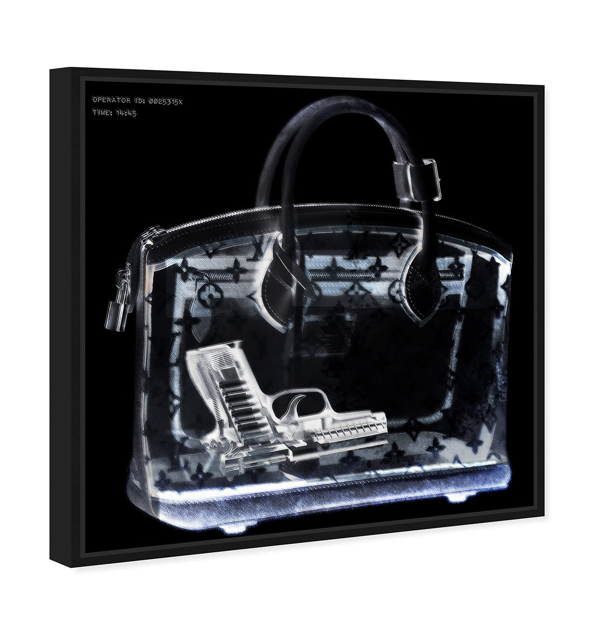 - Q: What style is the 'Couture X Ray' canvas print? A: The canvas print features a modern black and white fashion design, showcasing stylish handbags.