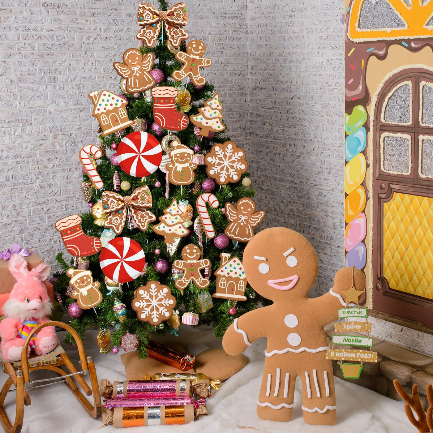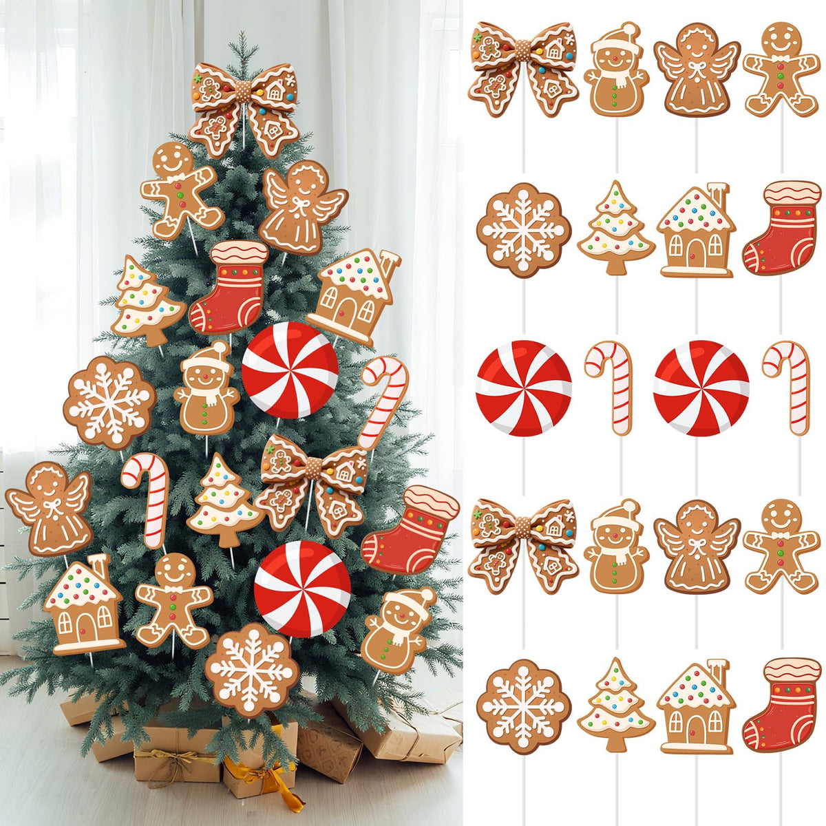 Thyle 20 Pcs Large Gingerbread Man Candy Cane Picks for Christmas Tree 8 Inch Gingerbread and Candy Picks Ornaments for Christma