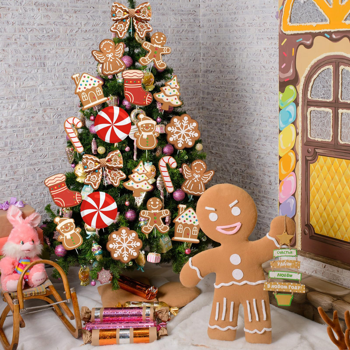 Features: Add a vibrant touch to your holiday decor with our gingerbread Christmas decorations. Crafted from hollow cardboard, each ornament boasts a lively multicolor design that complements any Christmas theme. Whether you're aiming for a classic or eclectic look, these gingerbread Christmas ornaments are a nice fit, injecting cheer into your festive setup and catching every guest's eye. Made from hollow cardboard, these gingerbread Christmas decorations ensure durability while being eco-conscious. Enjoy the robustness of each ornament that promises to withstand seasonal use without compromising environmental responsibilities. This sustainable choice supports a greener holiday season, allowing you to celebrate with peace of mind. Specifications: Material: hollow cardboard Color: multicolor Size: The longest side is about 8 inches Package includes: 20 x Gingerbread man decoration 20 x Sticks Notes: Manual measurement, please allow slight errors on size. The color may exist a slight difference due to different screen displays