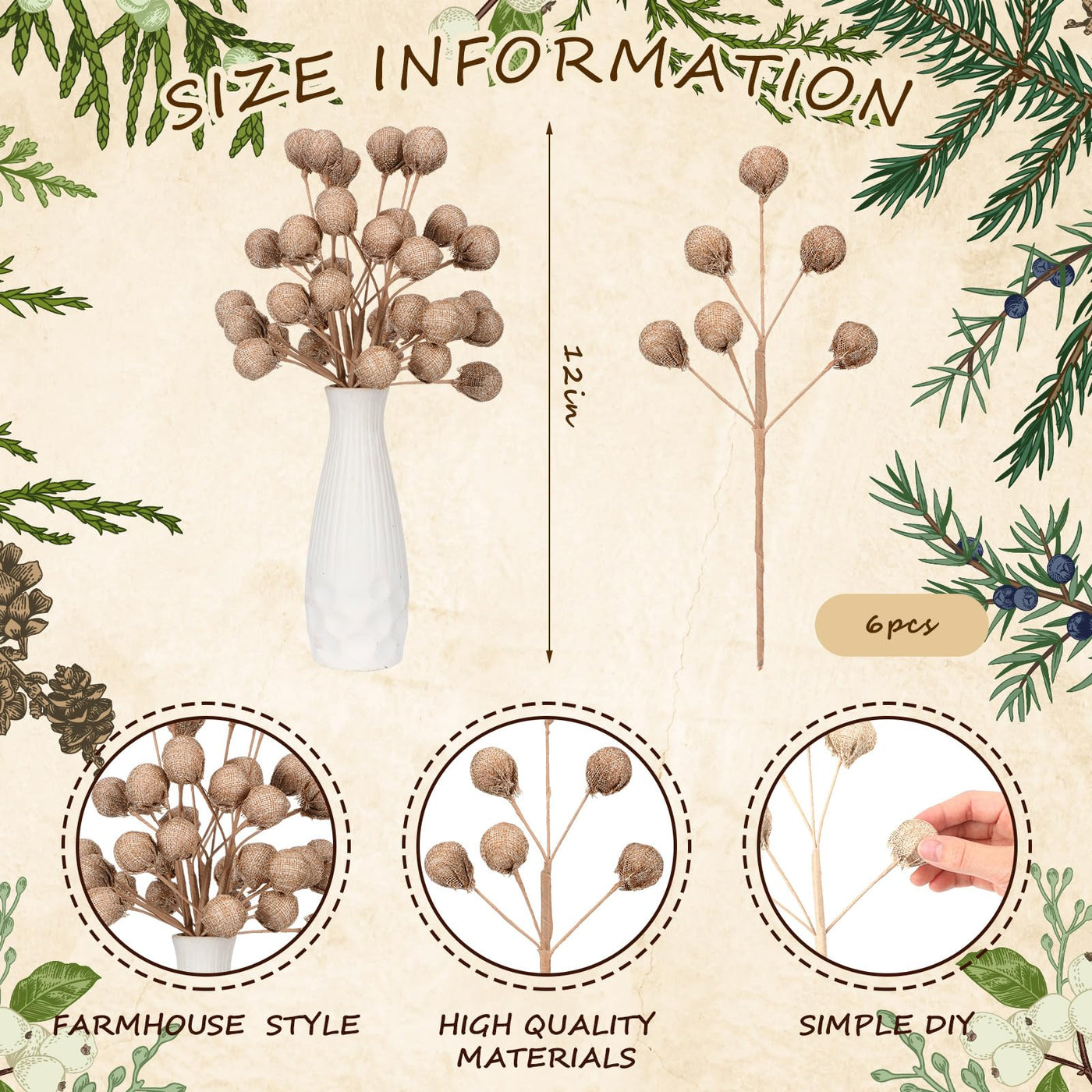 Features: Sculptural Beauty in Natural Color: The natural color of these burlap spheres complements any holiday palette, adding warmth and texture without overpowering your existing decor. This neutral hue ensures they blend beautifully with various color schemes, making them an effortless addition to your decorative lineup. DIY Delight and Creativity: Unleash your creative flair with these burlap sphere picks. Perfect for DIY projects, they invite you to craft personalized decorations or add unique touches to existing decor, providing the ideal canvas for your artistic endeavors. Specifications: Material: burlap, foam and metal Color: natural color Size: 11.81 inches/ 30 cm in length Package includes: 6 x Burlap spheres ball pick Notes: Manual measurement, please allow slight errors on size. The color may exist a slight difference due to different screen displays.