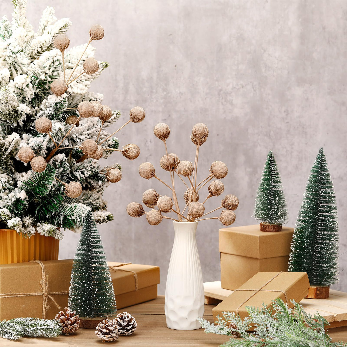 Tigeen 6 Pcs Burlap Spheres Ball Pick Farmhouse Christmas Tree Decoration Rustic Christmas Tree Ornaments Topper DIY Crafts Xmas