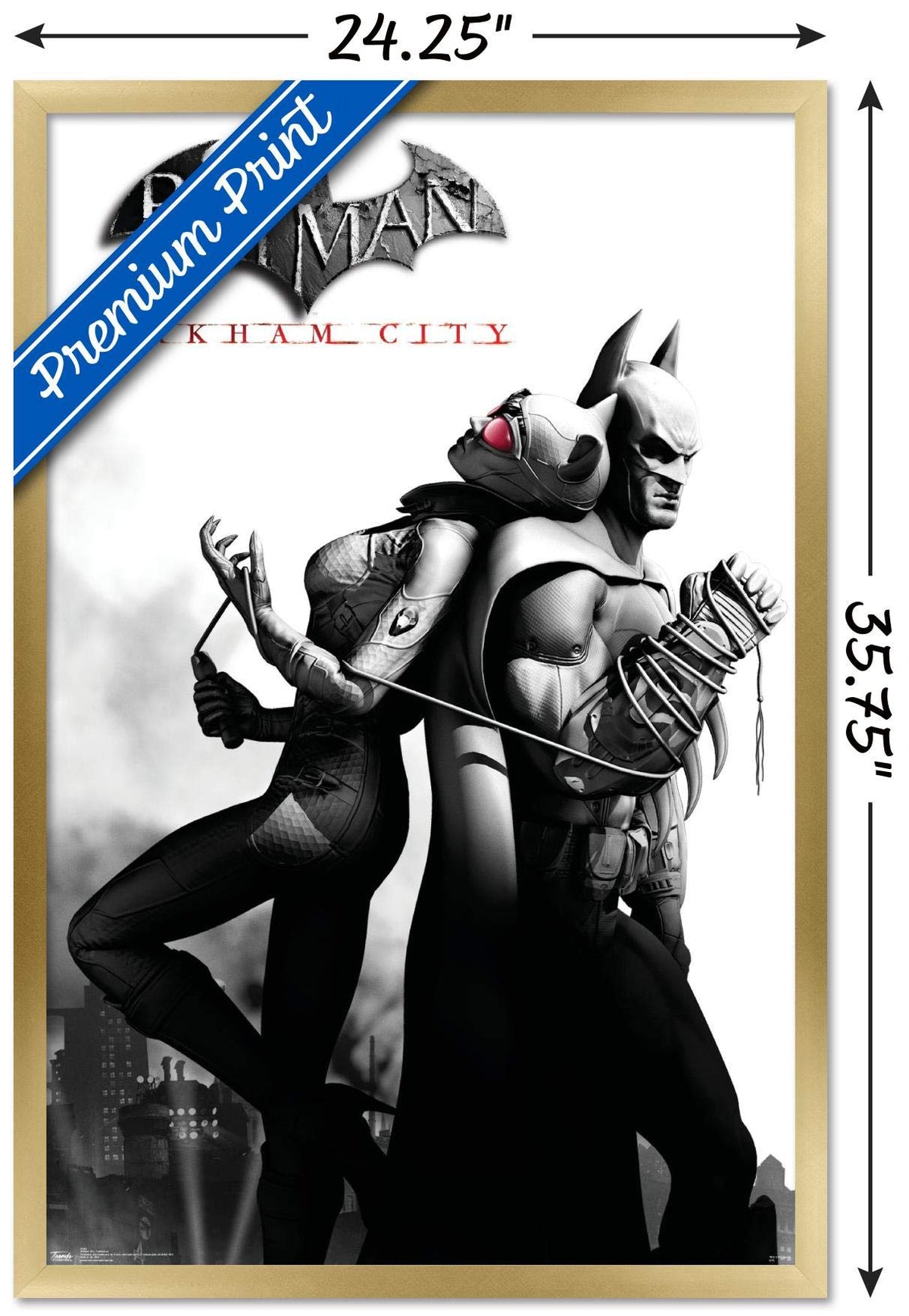 - Q: What size is the Trends International DC Comics Arkham City Catwoman Wall Poster? A: The poster measures 22.375" x 34" and the finished framed size is 24.25" x 35.75" x .75".