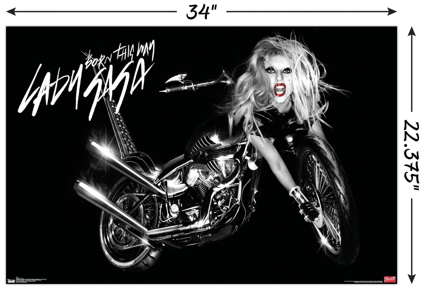 • Q: What size is the Lady Gaga Cover Wall Poster? A: The Lady Gaga Cover Wall Poster measures 22.375 inches by 34 inches.