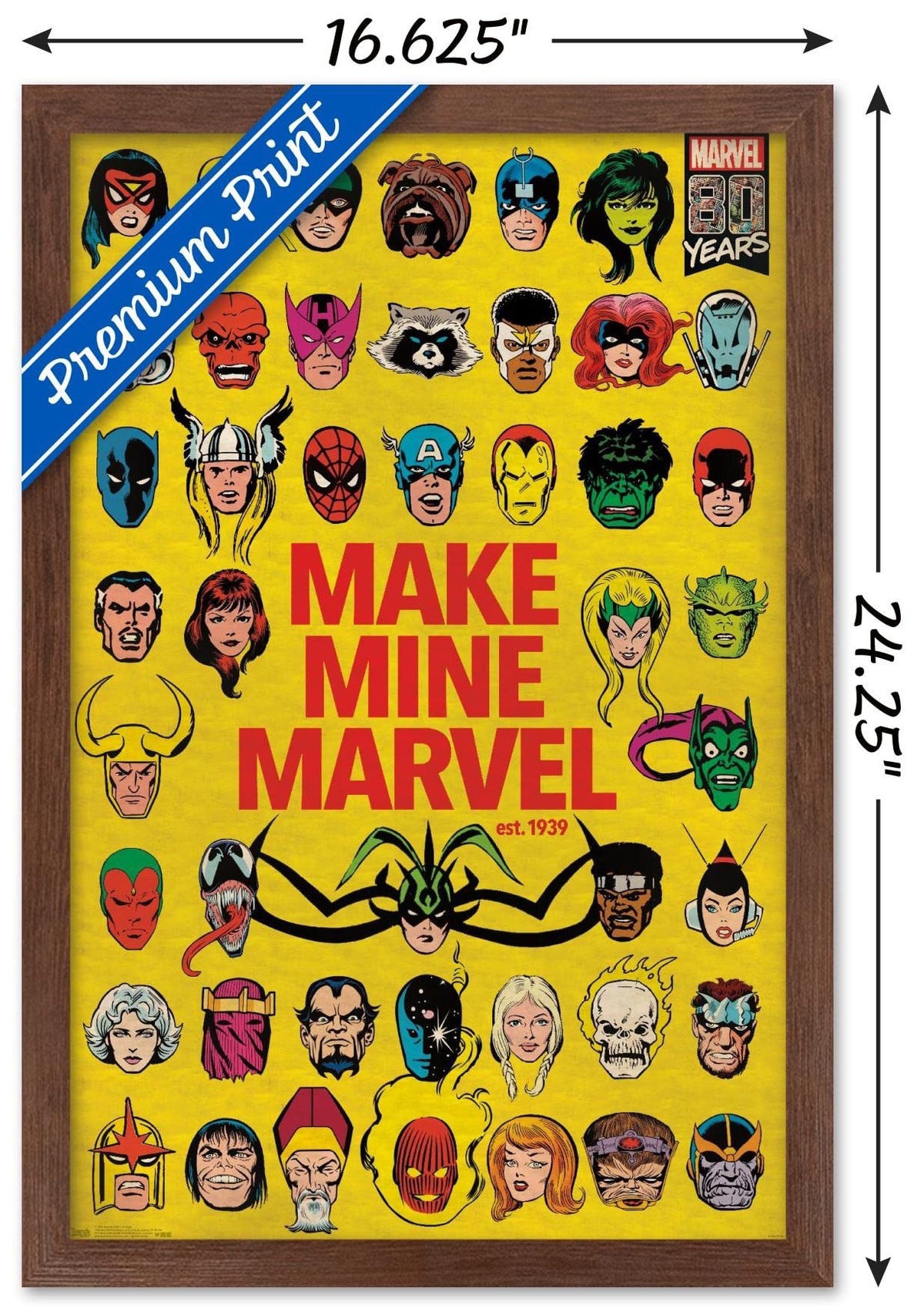Trends International Marvel Comics - Marvel 80Th Anniversary - Group Wall Poster, 14.725'' X 22.375'', Mahogany Framed Version