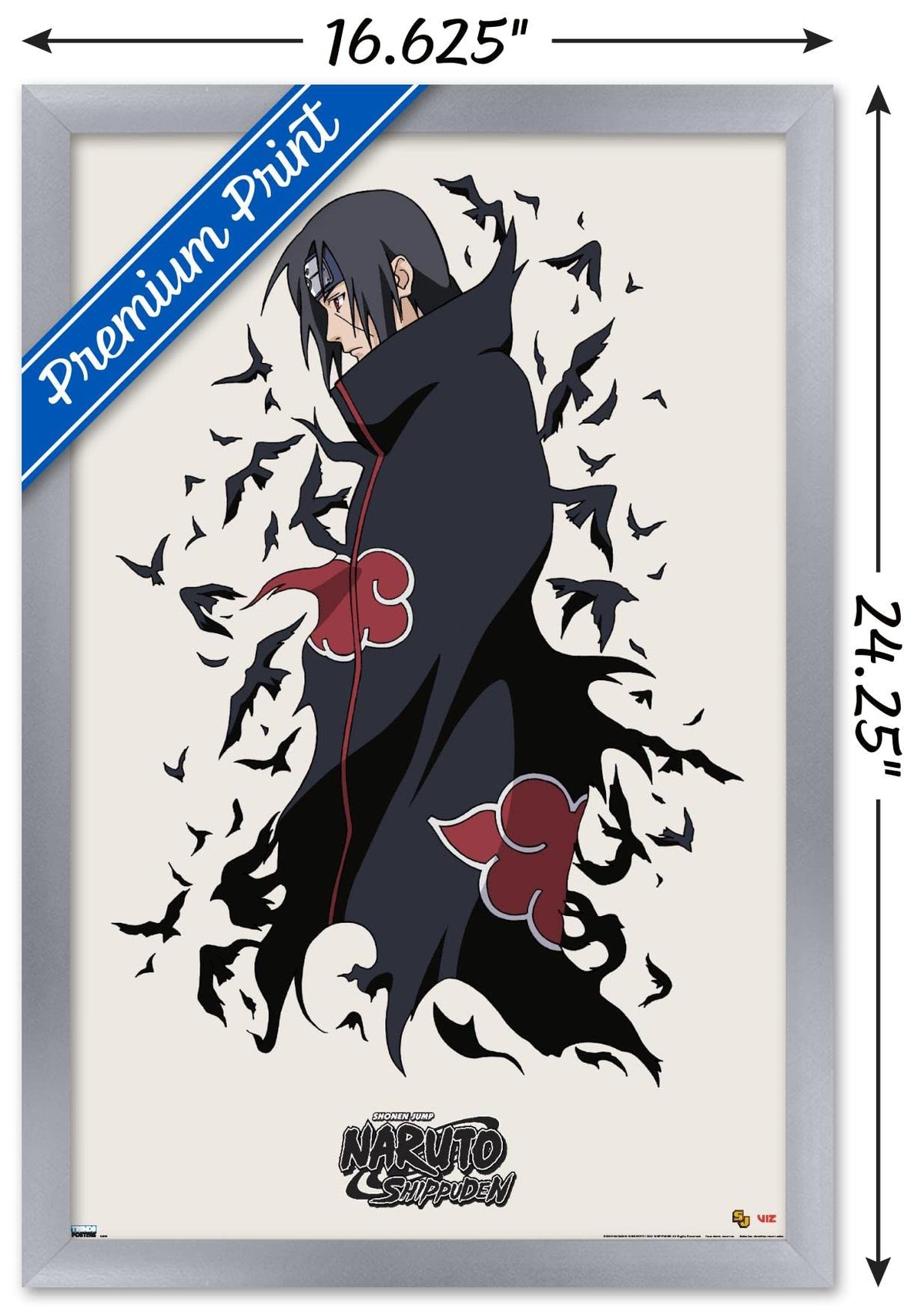 • Q: What are the dimensions of the Trends International Naruto Shippuden - Itachi Wall Poster? A: The poster measures fourteen point seven two five inches by twenty two point three seven five inches, and the finished size with the frame is sixteen point five inches by twenty four point two five inches by zero point seven five inches.