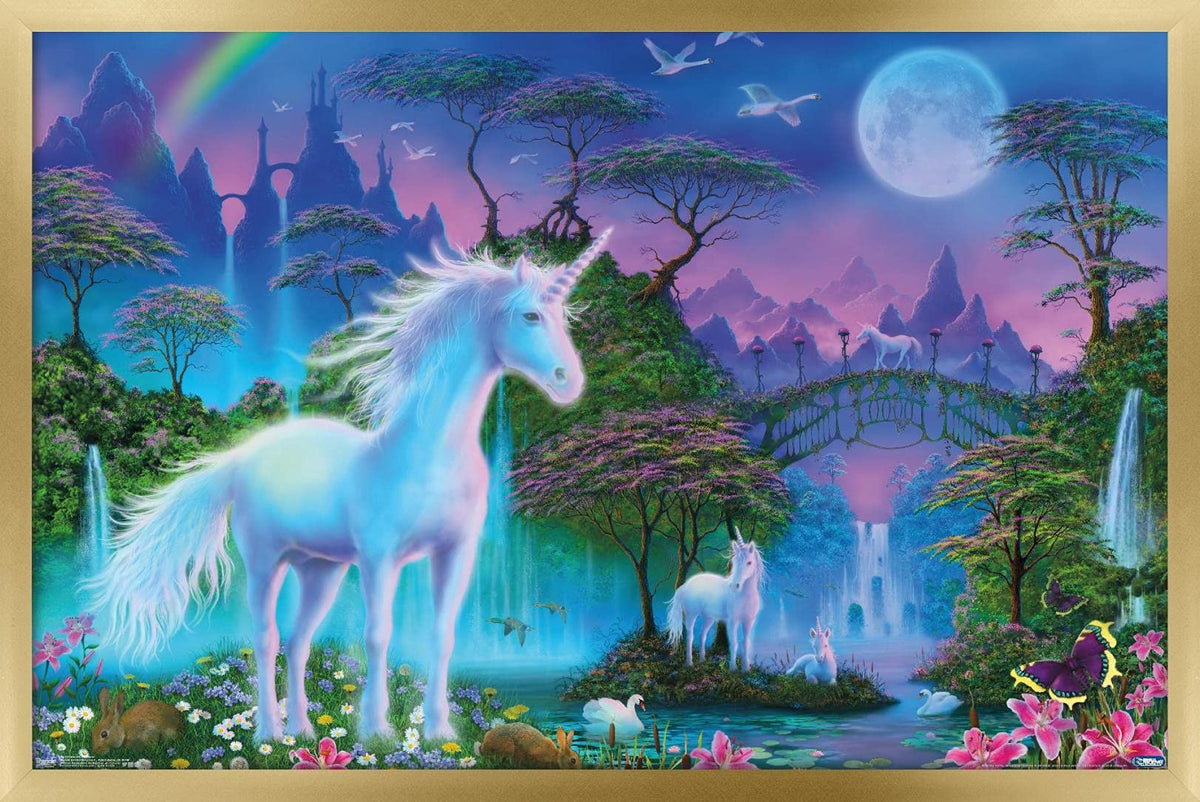 Trends International Unicorn Meadow Wall Poster, 14.725'' X 22.375'', Gold Framed Version