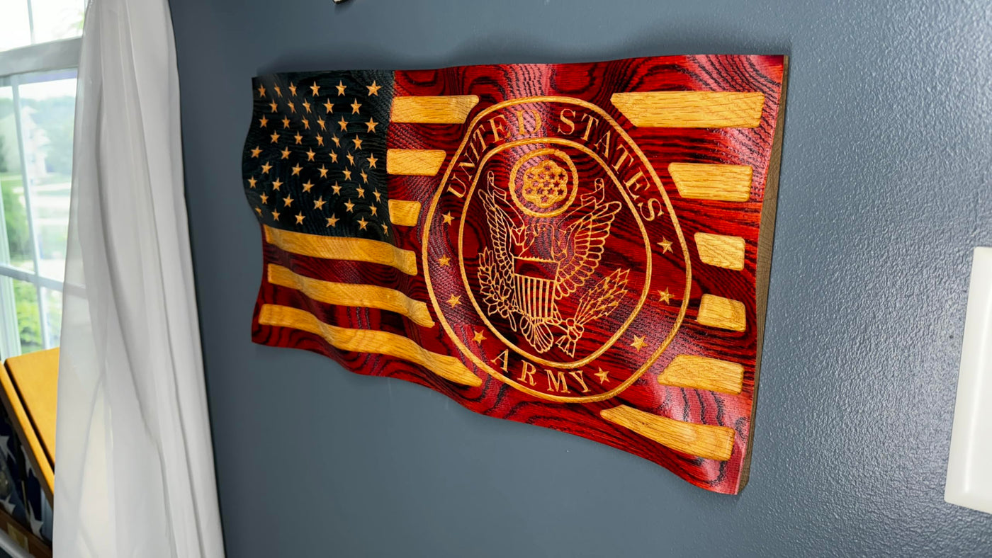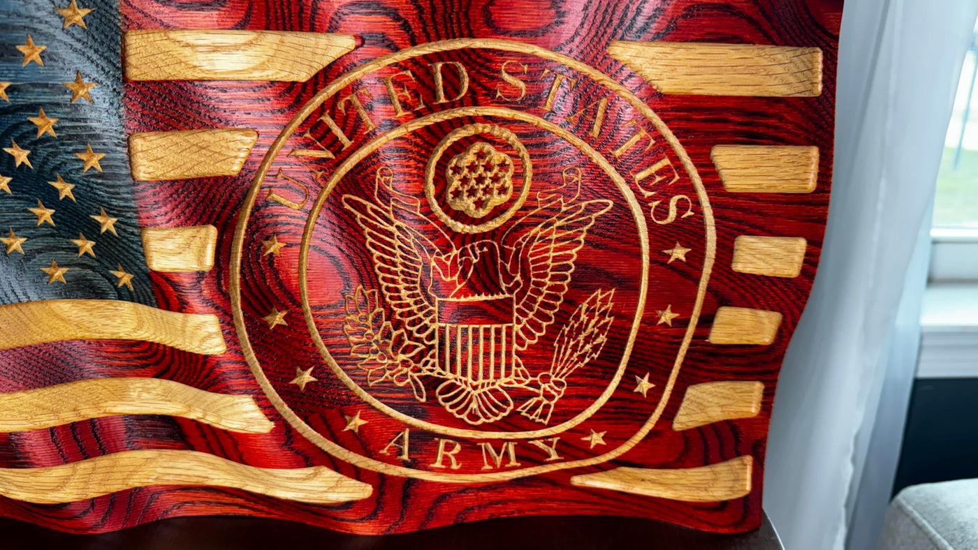 U.S. Army Solid Oak Waving Flag - 18 - Solid Oak - Hand Painted - Veteran Owned - Made in U.S.