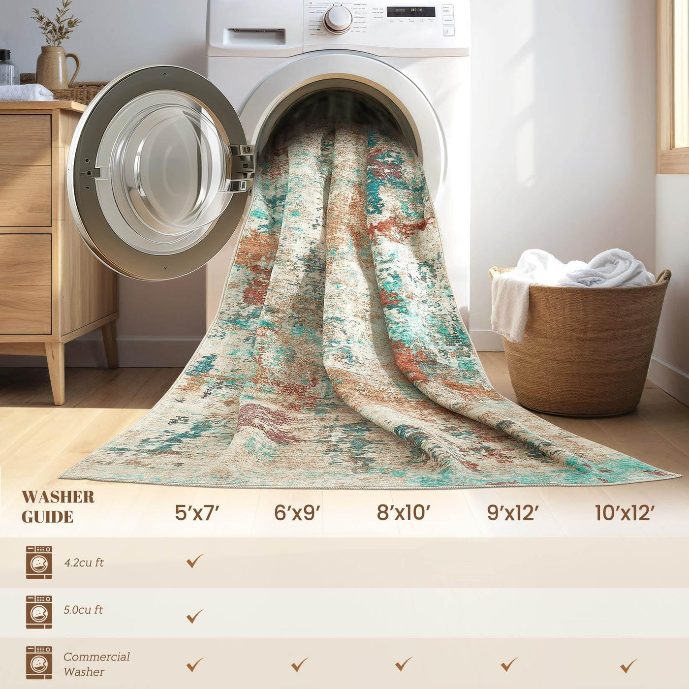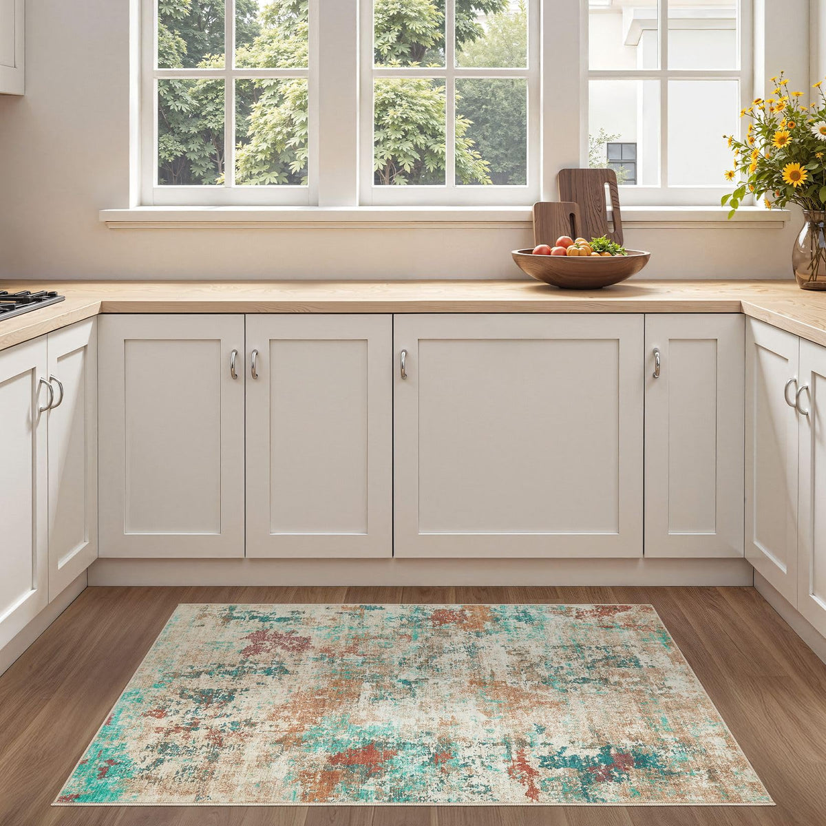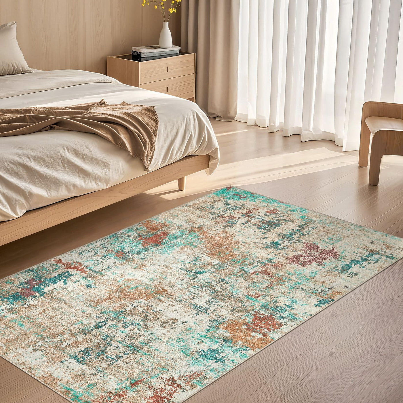 Enhance your home decor with our modern abstract area rug, suitable for families seeking a balance of style and functionality. This adaptable rug works well in many home spaces, including living rooms, bedrooms, childrens rooms, dining rooms, or studies, and may add subtle elegance to your interior.A key feature is the TPE rubber anti-slip backing, which provides reliable grip and stability. This helps minimize shifting and contributes to a safer environment for household activities. The reinforced lock-stitch edges improve durability, holding up well in frequently used areas. Crafted from polyester fabric, the rug offers a soft, comfortable feel underfoot and provides warmth for children and pets. Cleaning is straightforward: most spills can be wiped clean, and for deeper cleaning, the entire rug can be machine washed on a gentle cycle using cold water, then air-dried. It maintains its appearance after washing, with minimal fading or distortion. Care instructions: After unpacking, gently reverse fold the rug and place it under weight (such as books or furniture) for approximately 52 hours. This step helps reduce packaging creases. With periodic care, your rug can maintain a smooth and attractive appearance.
