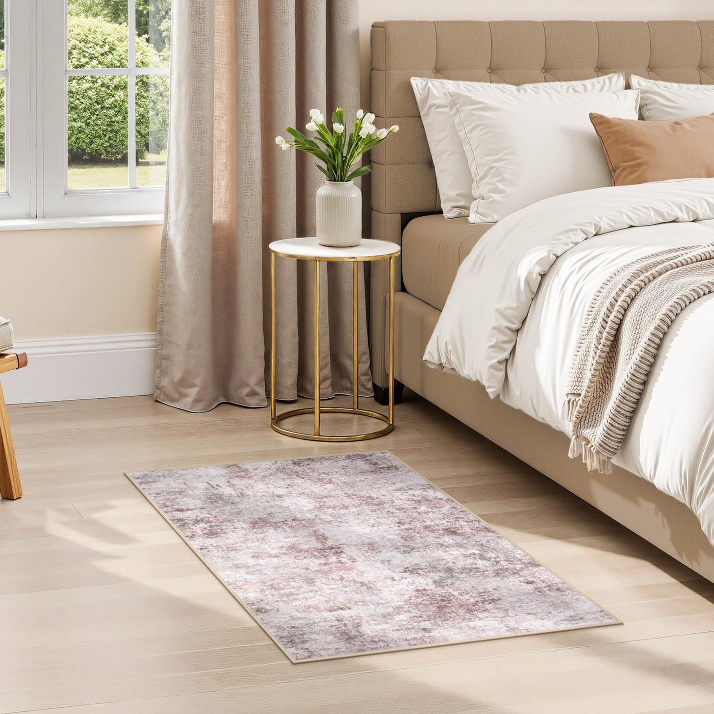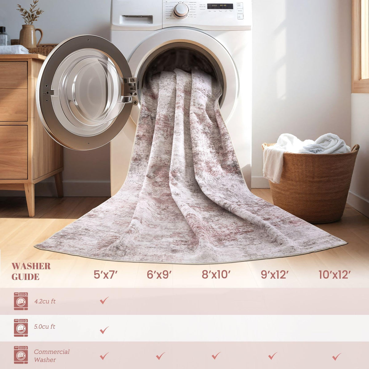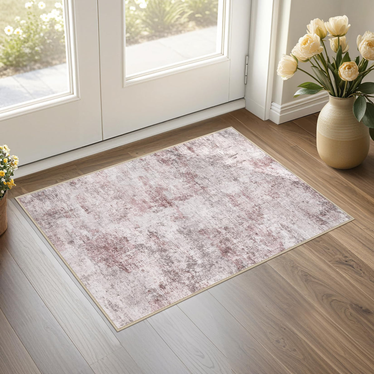 Pink-Toned Abstract Area Rug: Soft & Stain-Resistant Versatile Home Decor This rug features a unique abstract design in soft pink tones-bringing a gentle, cozy vibe to living rooms, bedrooms, studies and other spaces. Its dense low-pile fibers feel as soft as walking on clouds, keeping feet away from cold floors-perfect for families with pets, as the pink hue also adds a sweet, lively touch to pet-friendly homes. The soft TPE rubber backing adheres tightly to the floor to prevent slipping and reduce tripping risks, while reinforced locked edges avoid shedding. Made of polyester, its lightweight, durable and stain-resistant; spilled water wont soak in, and dirt can be wiped off promptly. Its machine-washable (commercial washers recommended for large sizes) for easy daily care.