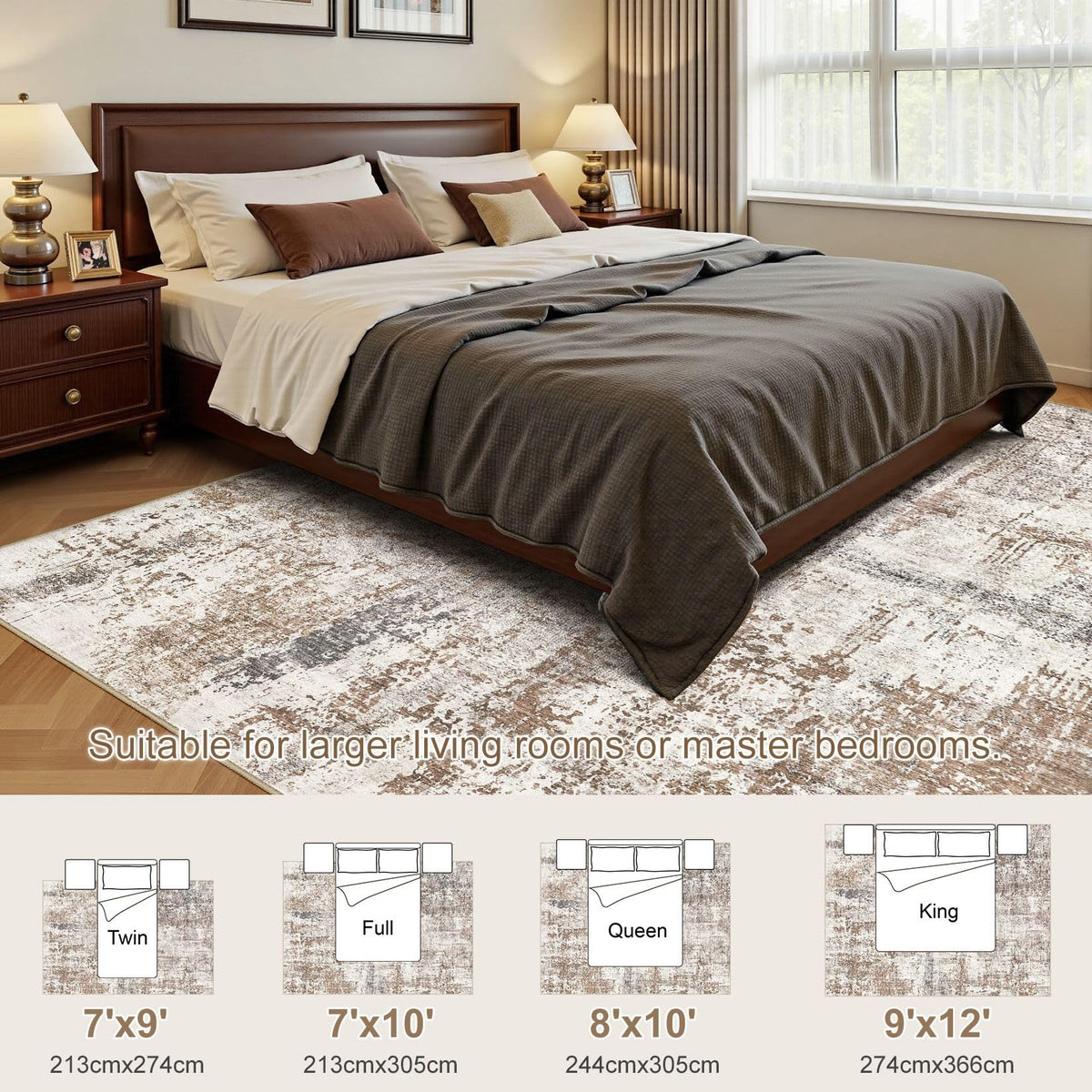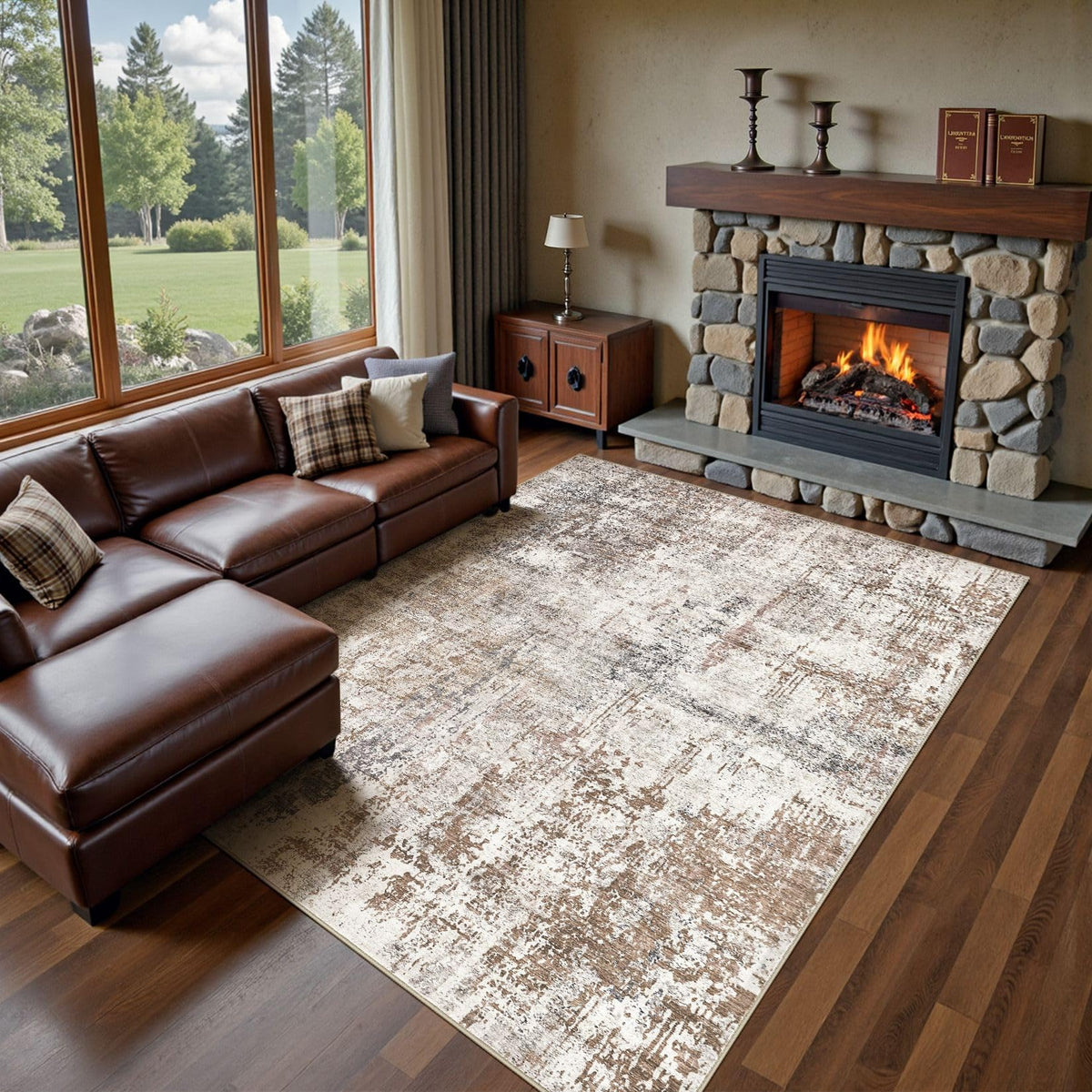 UERMEI 8x10 Area Rug Living Room Rugs - Washable Neutral Modern Abstract Soft Thin Rug Indoor Floor No Slip Rug Carpet for Bedro