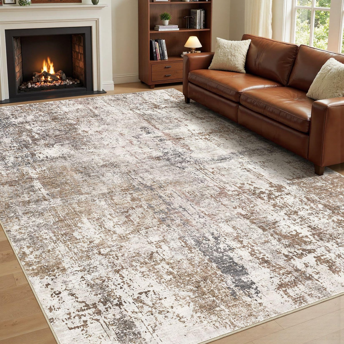 UERMEI 9x12 Area Rug Living Room Rugs - Washable Neutral Modern Abstract Soft Thin Rug Indoor Floor No Slip Rug Carpet for Bedro
