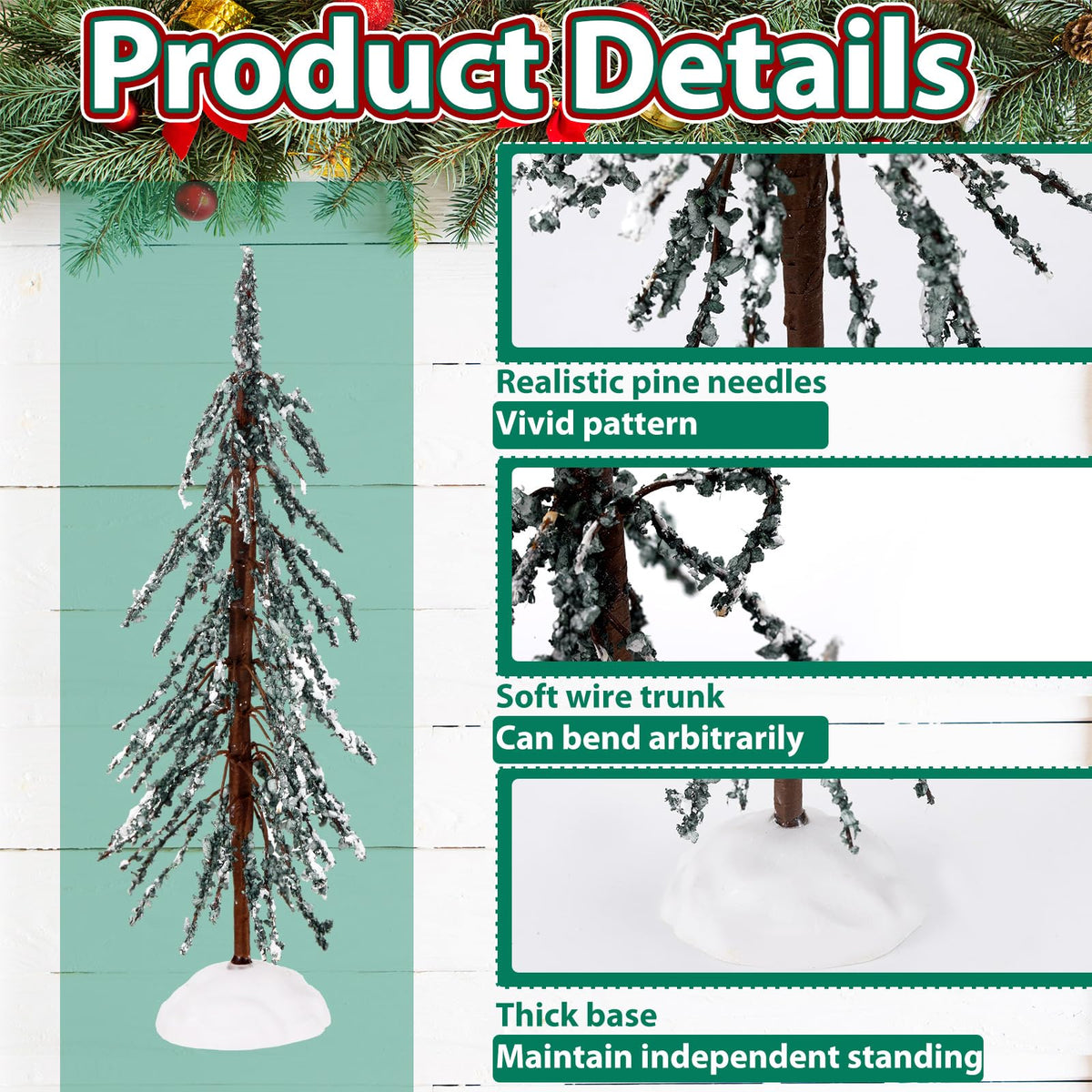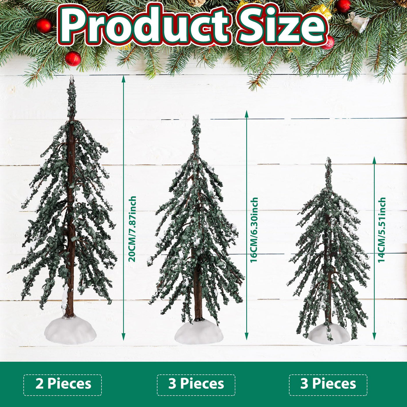 Uiifan 8 Pcs Christmas Village Trees Xmas Faux Artificial Small Tree Tabletop Artificial Trees Plastic Christmas Decorations for