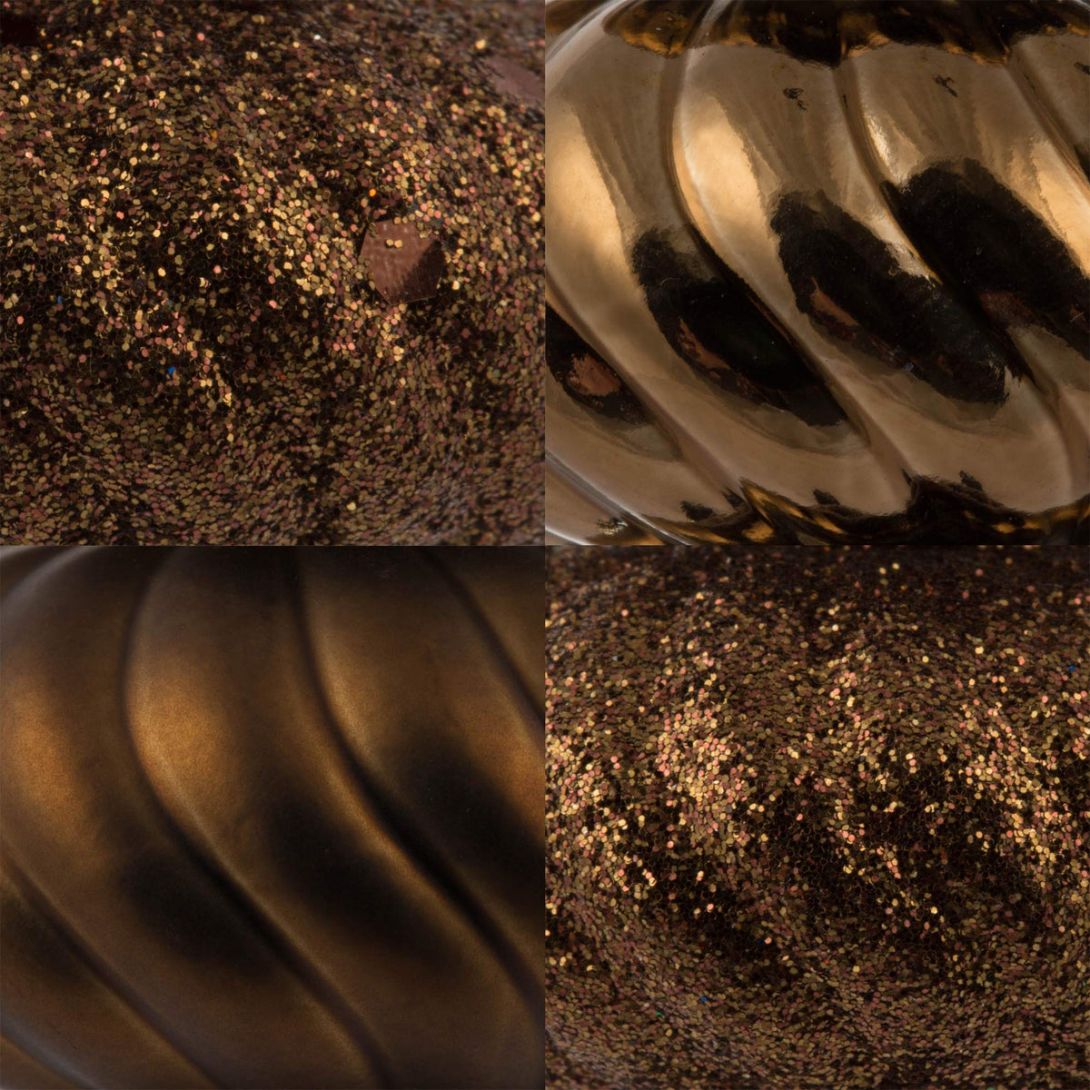 Vickerman 4 Mocha Finial Ornament Assortment of Shiny, Matte, Glitter and Sequin Finishes. This assortment features two of each kind of finish, for a unique addition to any decorating collection. These ornaments are made from shatterproof plastic for a lifetime of protection from breaking and feature metal caps for durability and reliable hanging. Vickerman has been an industry leader since 1940. Enjoy this expert designed ornament in your home. Includes 8 ornaments per box.