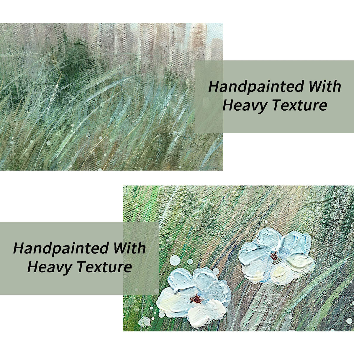 - Q: Is the painting fully hand-painted? A: The painting combines hand-painted elements with printing techniques, resulting in a textured finish that mimics hand-painting.