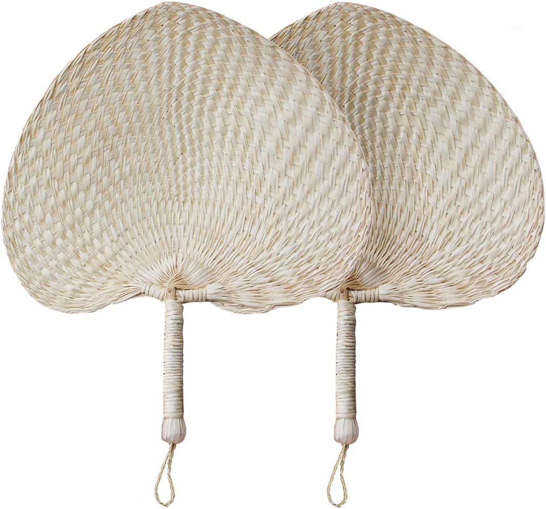 WASSON Hand Made Fan Rattan Decor, Hand Fans Bulk Wedding Favors for Guests, Paddle Fans Handheld Bamboo Fan Raffia Woven Fan 2