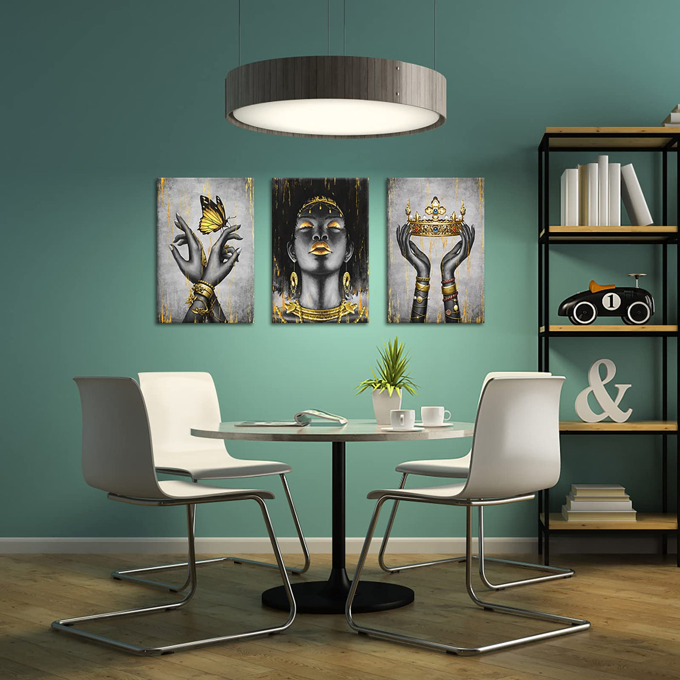 Welmeco Elegant African American Woman With Gold Crown Fashion Accessories Painting Giclee Prints Black Girl Canvas Poster Galle