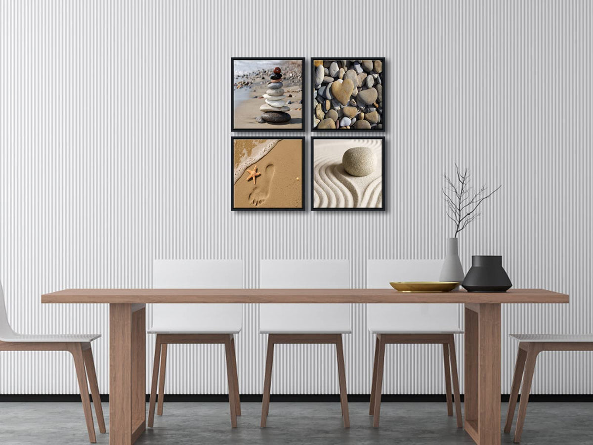 - Q: What are the dimensions of the artwork? A: The artwork consists of 4 panels, each measuring 12 inches by 12 inches, with the finished framed size being 13 inches by 13 inches for each panel, and a thickness of 1.4 inches.