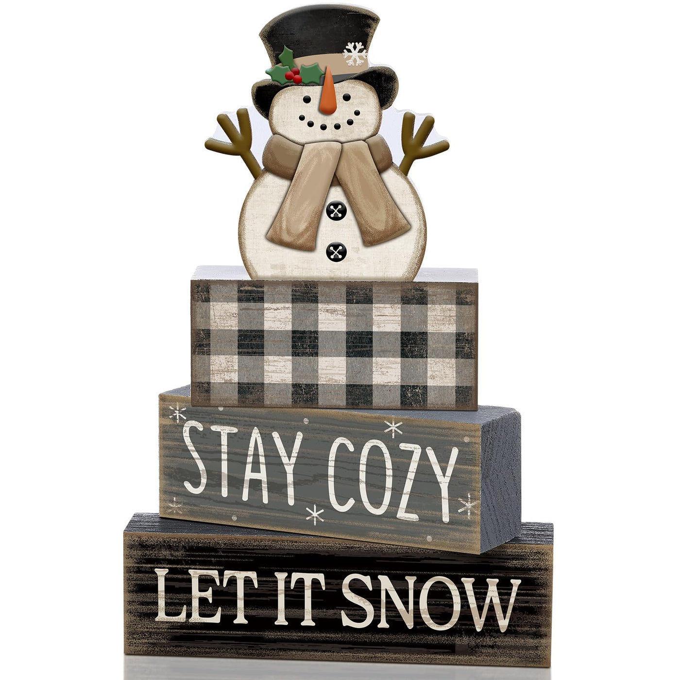 Yuntau 4 Pcs Christmas Winter Table Decorations Wooden Snowman Winter Tiered Tray Decor Rustic Block Signs Gift Farmhouse Christ
