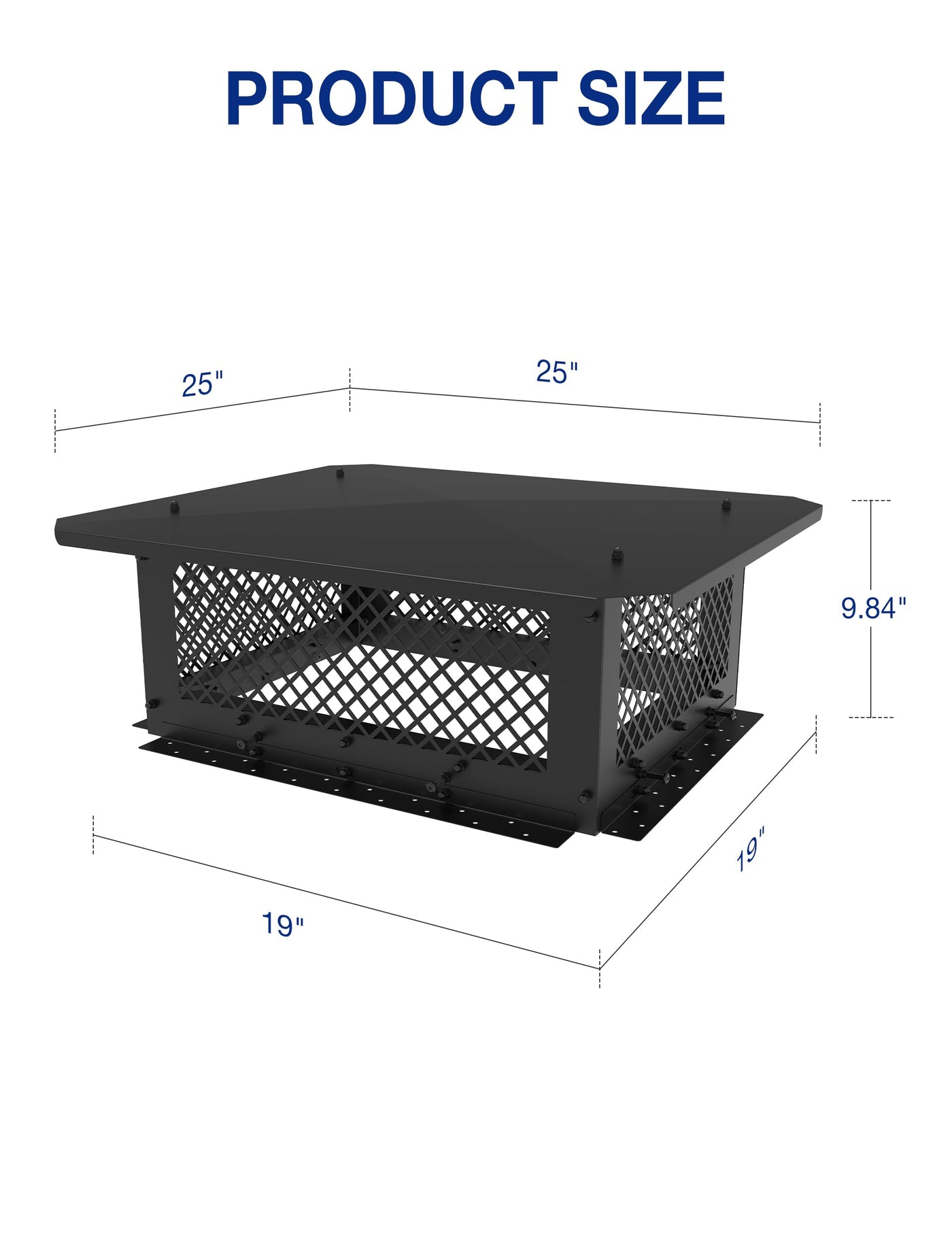 - Q: How can I maintain the chimney cap for long-lasting use? A: Regularly inspect the chimney cap for debris build-up and ensure the mesh remains intact for optimal performance and longevity.