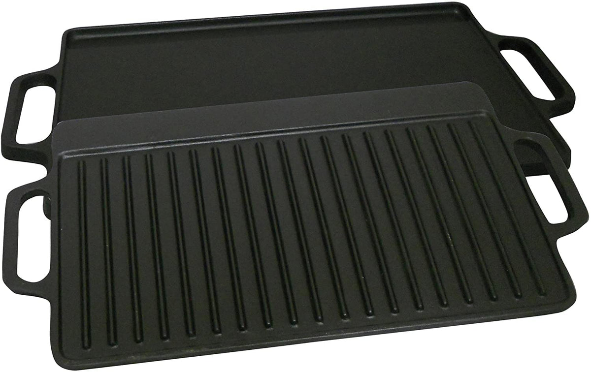 14'' X 28'' Seasoned 2 Sided Cast Iron Griddle, 1 Side Flat, 1 Side Ribbed.