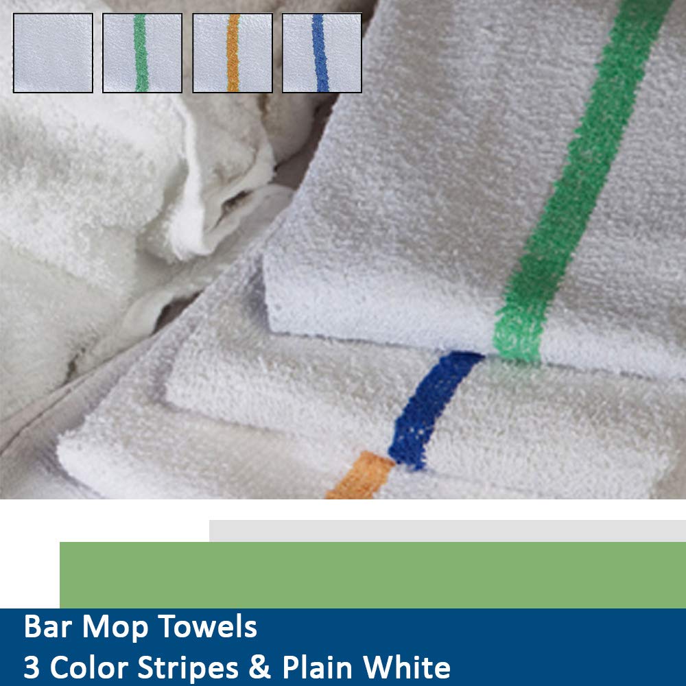 28Oz Bar Mop Towels 16X19, 100% Cotton, Commercial Grade Professional Kitchen/Restaurant Barmop Towels (Green Stripe-120 Pack)