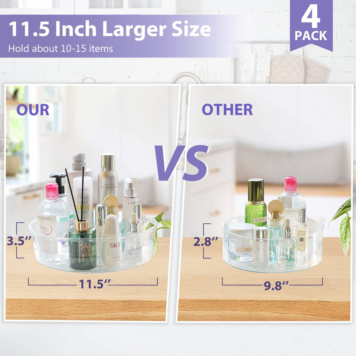 4 Pack Lazy Susan Organizer For Cabinet, Upgraded 11.5'' Clear Lazy Susan Turntable With Handles And Raised Edge, Rotating Lazy