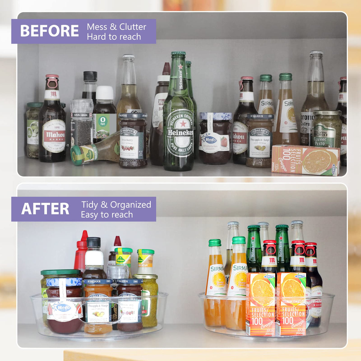 - Q: Can I use this organizer in the refrigerator? A: Absolutely! This Lazy Susan is versatile and can be used in the kitchen, pantry, refrigerator, and even bathrooms for effective organization.