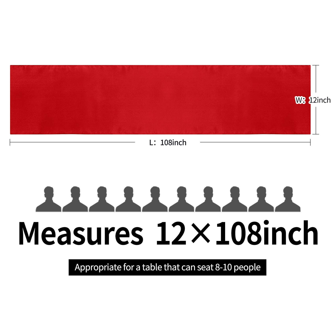 - Q: What are the dimensions of the satin table runners? A: The satin table runners measure 12 inches by 108 inches, making them suitable for tables that can seat 8 to 10 people.