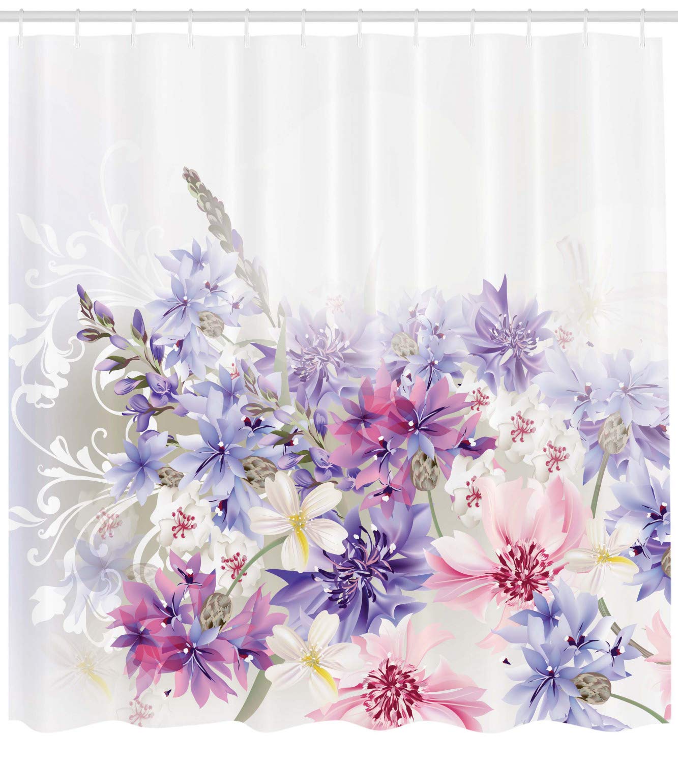 Ambesonne Lavender Shower Curtain, Pastel Cornflowers Bridal Classic Design Gentle Floral Print Wedding Design, Cloth Fabric Bat