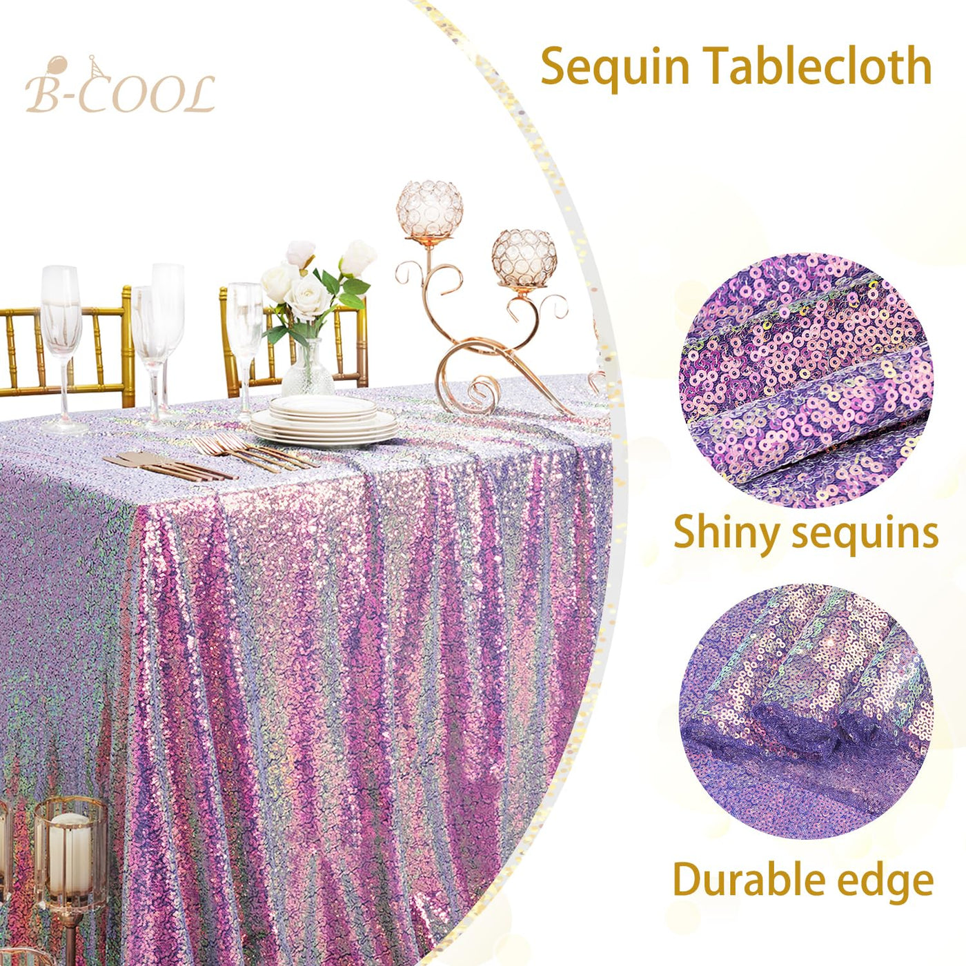 B-COOL Shimmer Sequin Tablecloth Glitter Iridescent: Rectangle Table Cloth 90x90 Inch Decorations for Birthday Party Halloween D