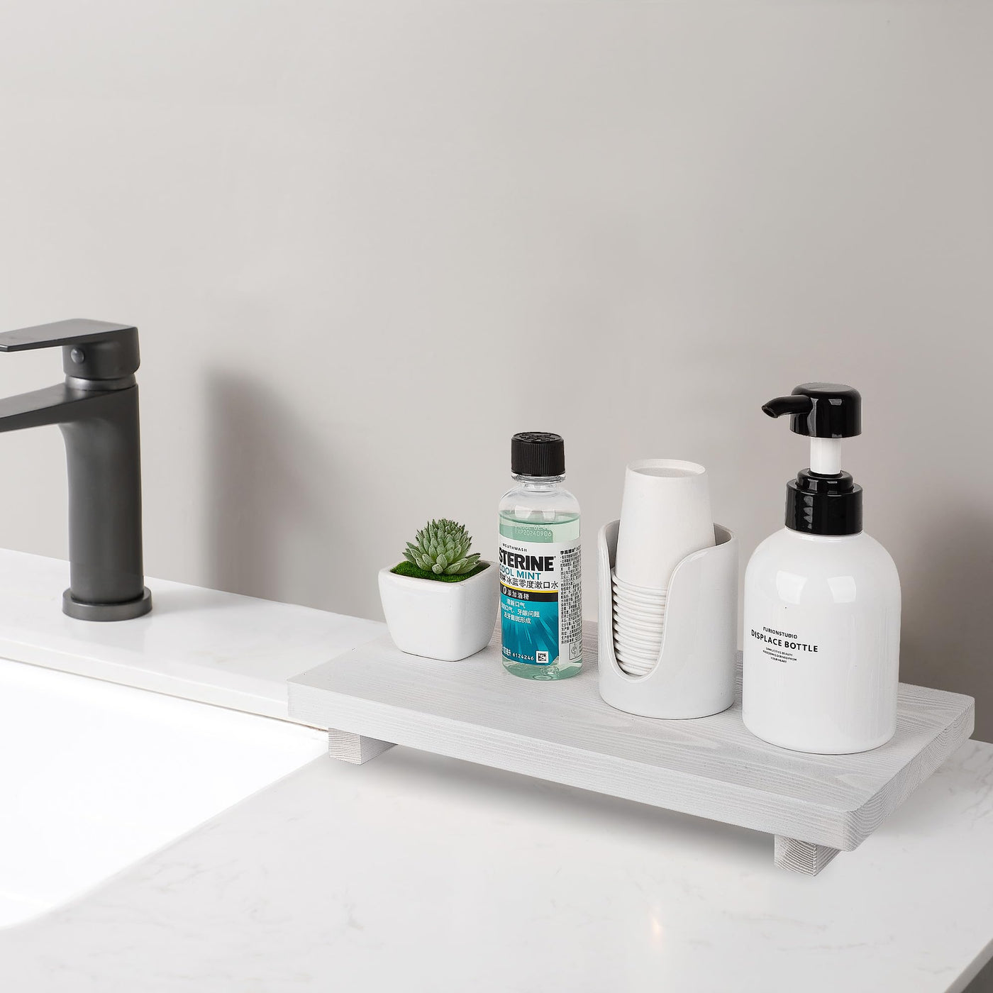 Bathroom Counter Organizer Wood Pedestal Stand Farmhouse Decorative Tray Soap Holder For Kitchen Decor, Large 11.8'' X 7'' - Whi