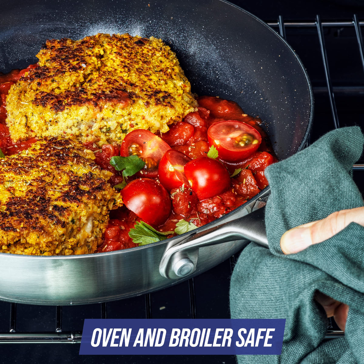 Blue Diamond Stainless Steel 11 Wok Pan With Glass Lid, Induction Compatible, Diamond Infused Pfas-Free Ceramic Nonstick, Mult