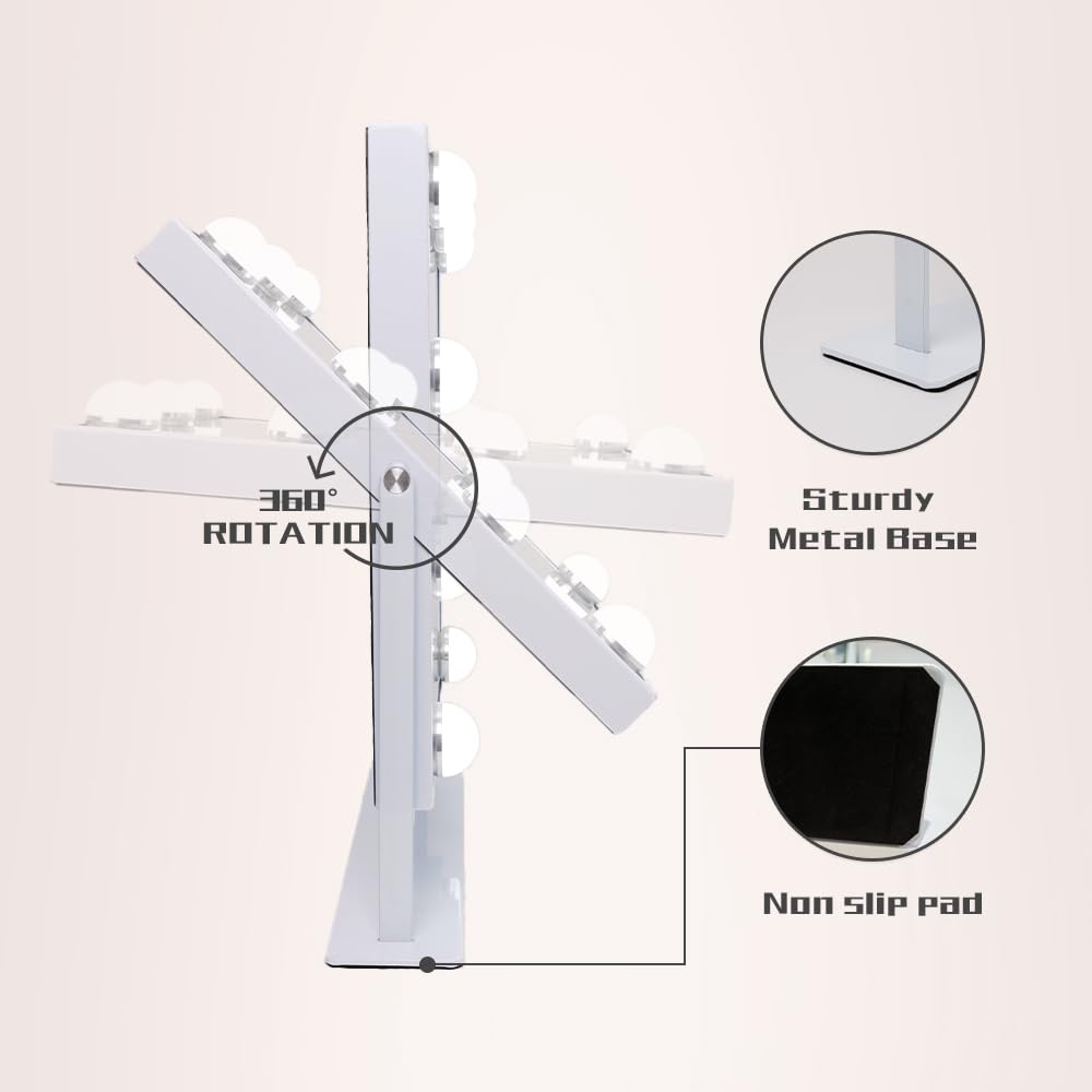 Cooljeen Vanity Mirror With Lights, 9 Led Bulbs Lighted Makeup Mirror With Detachable 10X Magnification Mirror, Hollywood Mirror