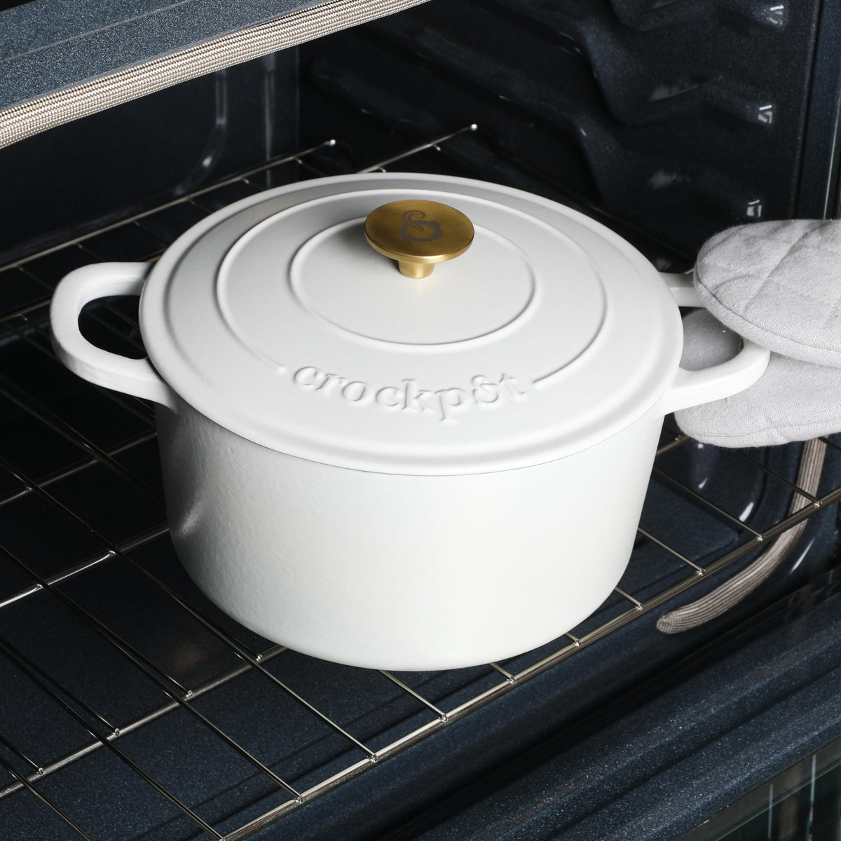 Crock Pot Artisan 7-Quart Round Dutch Oven - Matte Linen White W/Gold Knob