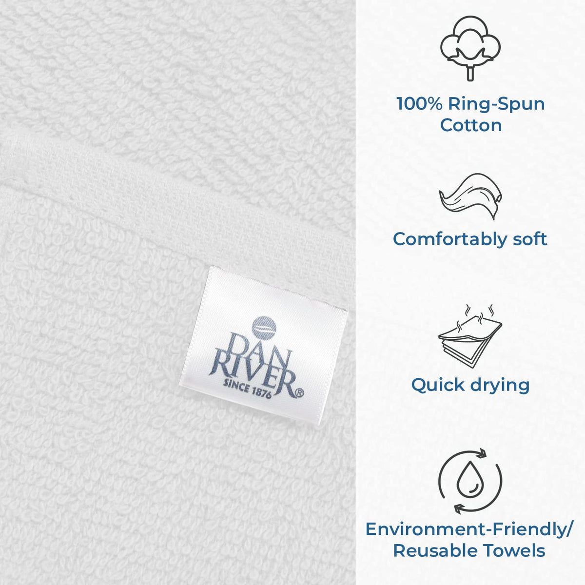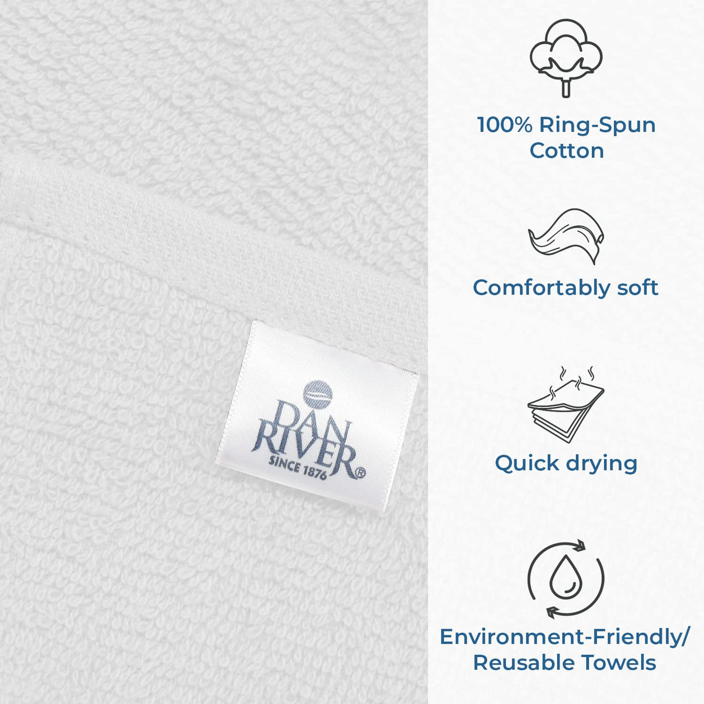 Dan River 100% Cotton Washcloths 12 Pack Premium Quality Face And Body Cloth, Quick Dry Essential Towels For Bathroom, Hand, Kit