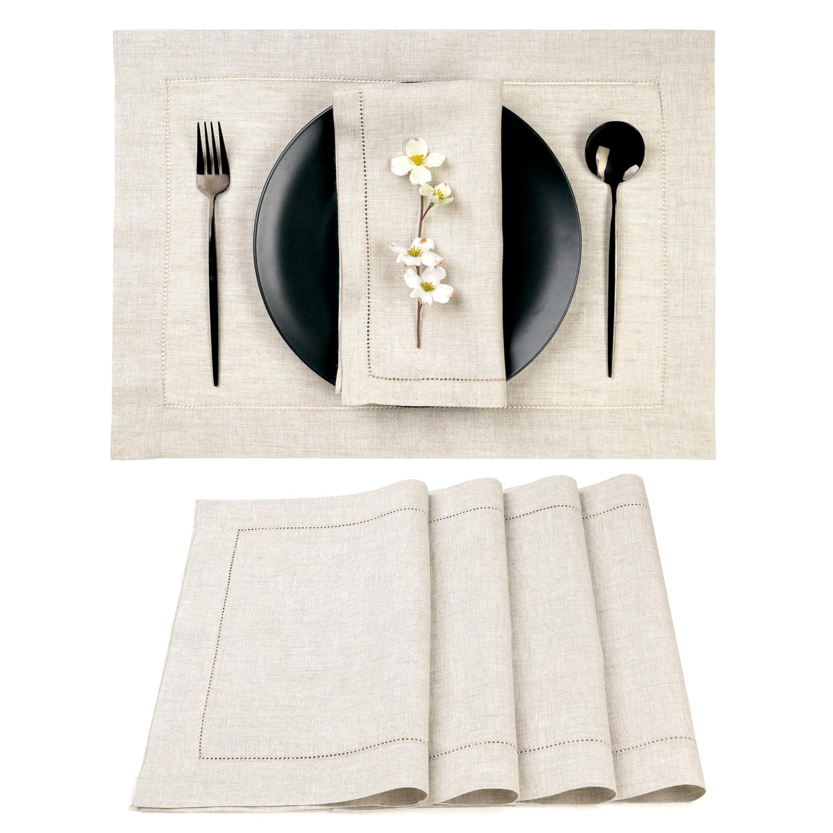 • Q: What is the design style of the placemats? A: The placemats feature a classic hemstitch design that adds elegance and luxury to your dining table.