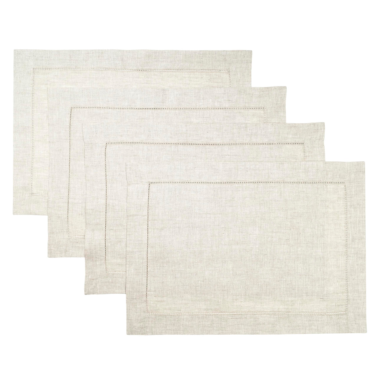 D'Moksha Homes Linen Placemats Set Of 4-100% Pure Linen Light Natural Placemats 14 X 19 Inch - Classic Hemstitch, Washable Light