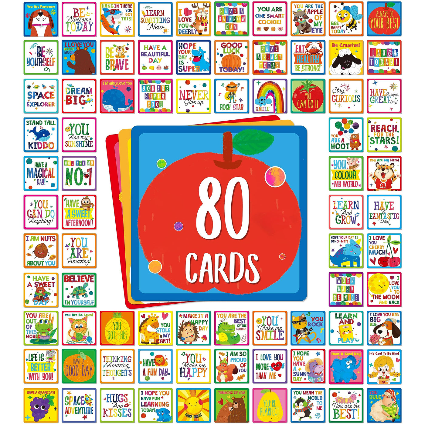 Gethelud 80 Pcs Lunch Box Notes For Kids, Inspirational Words With Adorable Designs Positive Affirmation Cards For Boys And Girl