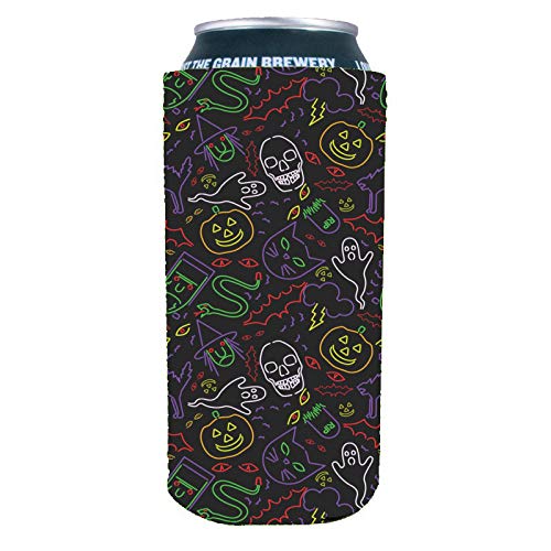 • Q: What material is the Halloween Neon Pattern Can Coolie made of? A: The Halloween Neon Pattern Can Coolie is made of 1/8" (3mm) neoprene material, which is similar to wet suit material.