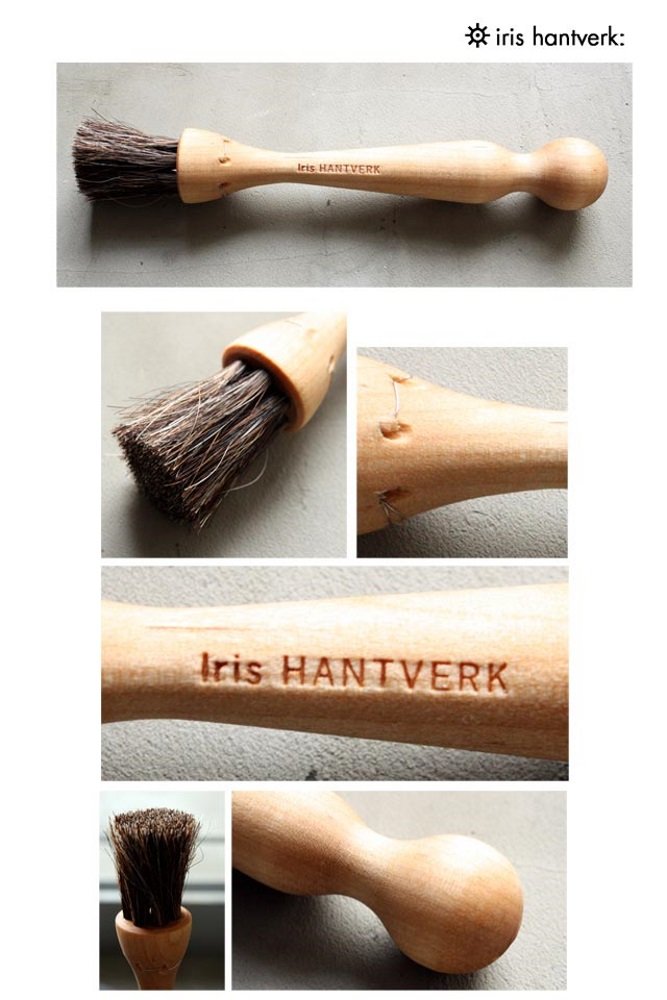 • Q: What is the Iris Hantverk Birch Wood and Horsehair Mushroom Brush made from? A: The brush is made from oil-treated birch wood and features horsehair bristles.