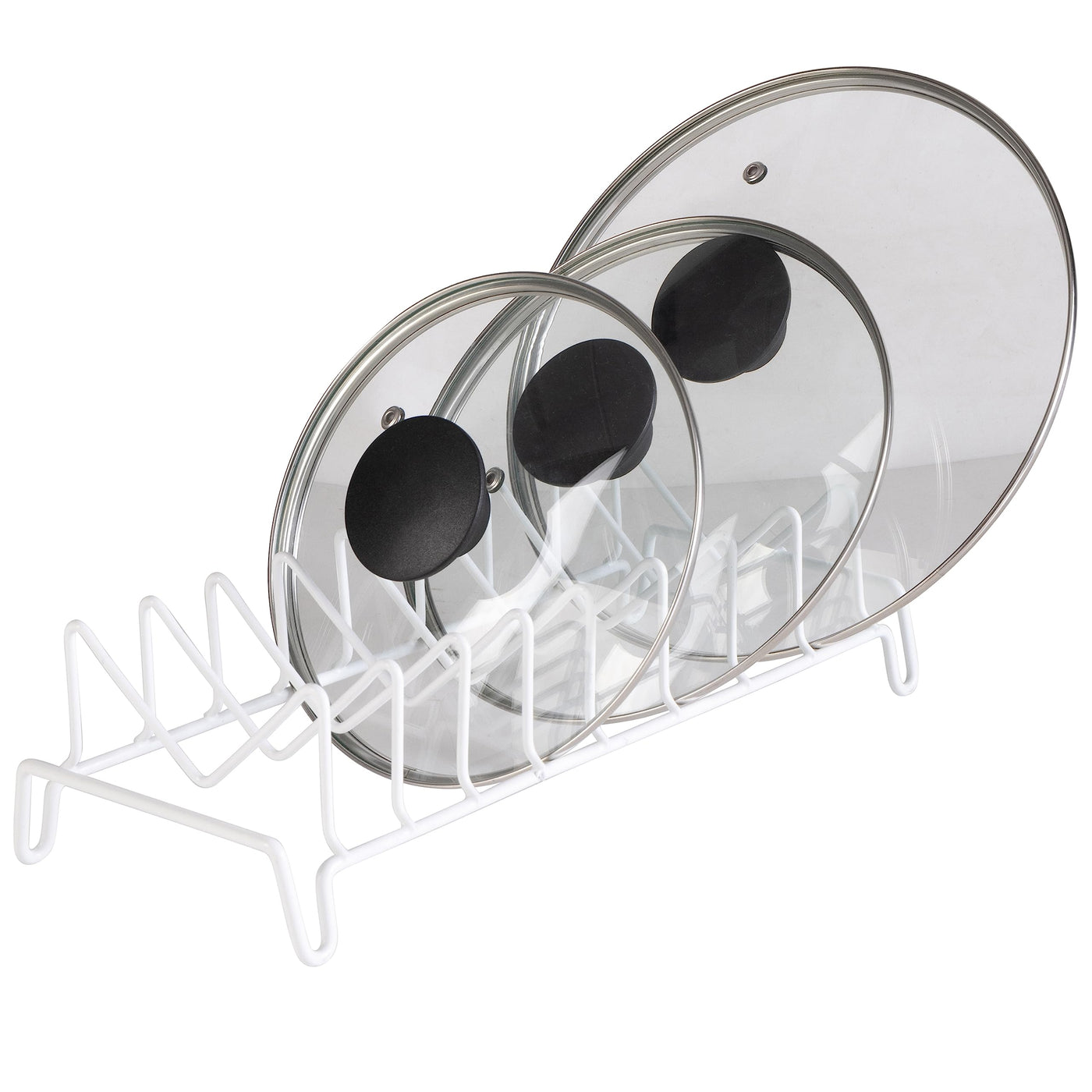 • Q: What is the best way to utilize this organizer in my kitchen? A: You can use it to neatly arrange your pot and pan lids, keeping them easily accessible, or as a drying rack for dinnerware.
