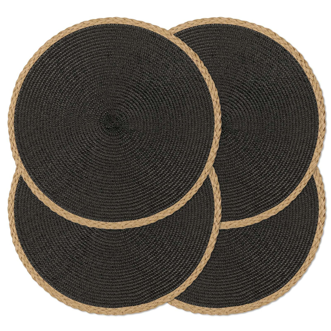 Noctiflorous Round Braided Placemats Set Of 4 Table Mats 15 Inches Washable Heat Resistant For Dining Table Non-Slip Indoor Outd