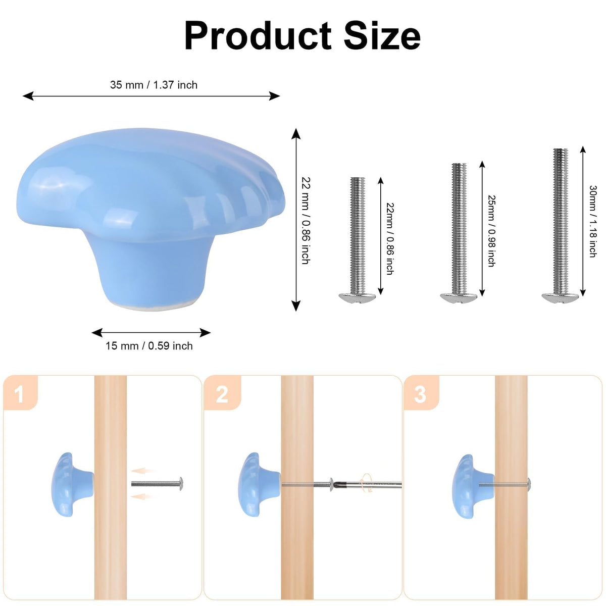 Features: Excellent colorful ceramic cuty looking little door handles for bedroom wardrobes, cupboard doors, closet; A nice improvement for the kids bedroom. Color: Beige, Yellow, Green, White, Pink, Light Pink, Pale Pinkish, Light Purple, Blue, Blue-green Material: durable hard ceramic Knob Dimension: Height: 15mm/0.59; Surface Diameter : 35mm/1.37; Base Diameter : 15mm/0.59 Three length screws 22/25/30mm are included. Suitable for up to 25mm thickness board. Packlist: 10x Seashell-shape Colorful Knobs 10x 22mm Screws 10x 25mm Screws 10x 30mm Screws