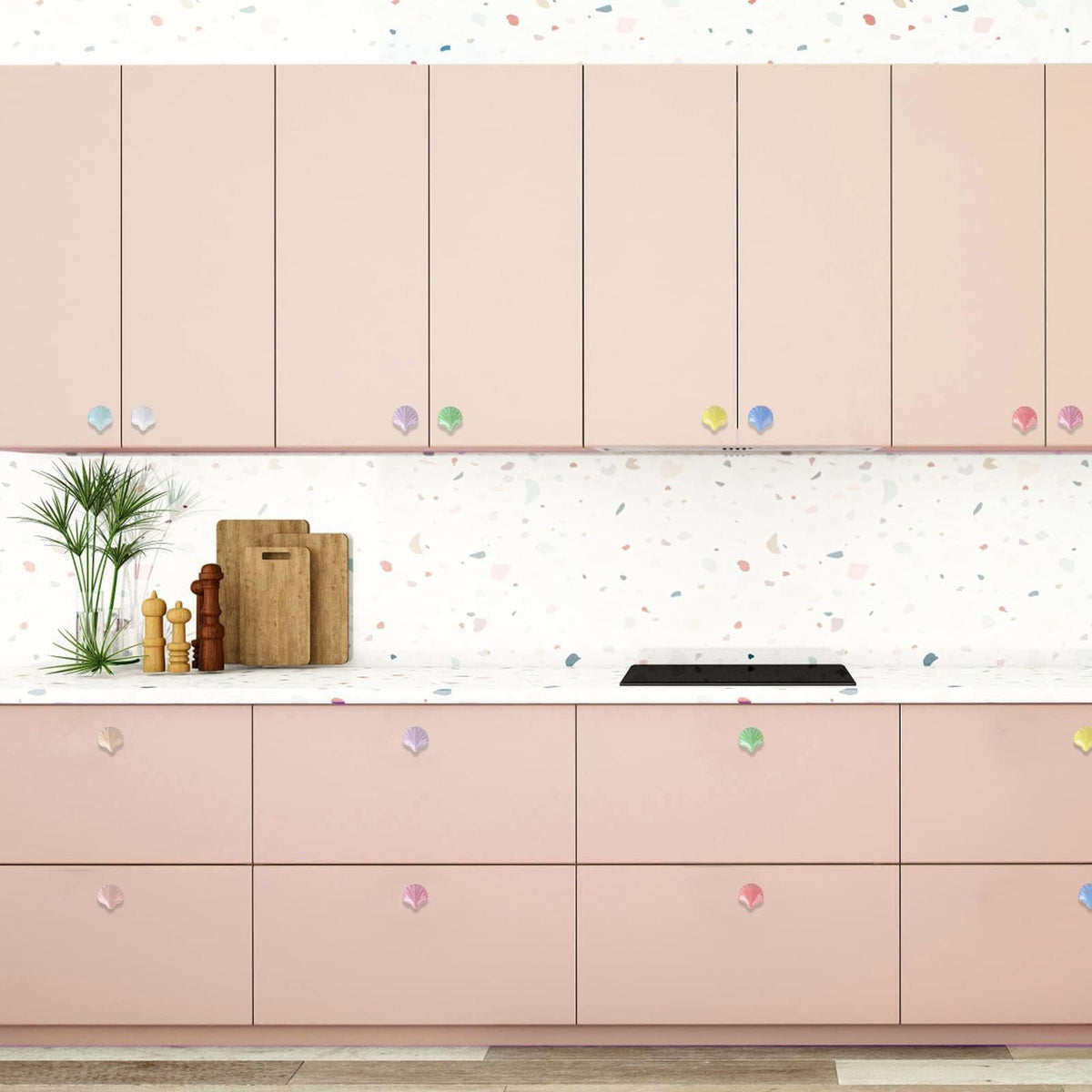 OctinPris 10x Colorful Cute Glossy Ceramic Knobs Seashell Shape Lovely Door Pull Knob Cabinet Closet Ceramic Drawer Cupboard Kit