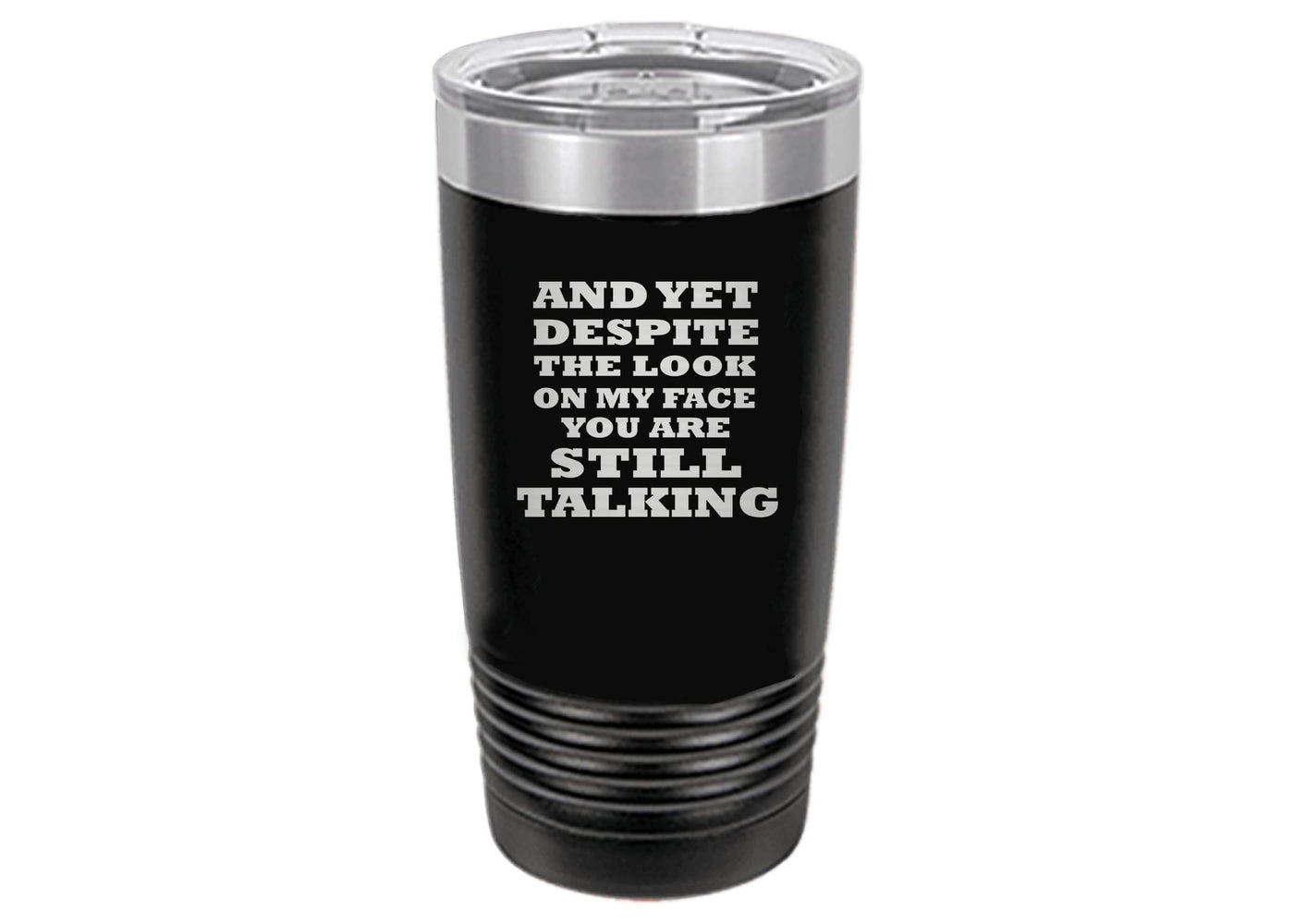 Rogue River Tactical Funny And Yet Despite The Look On My Face You Are Still Talking Large 20 Ounce Travel Tumbler Mug Cup W/Lid