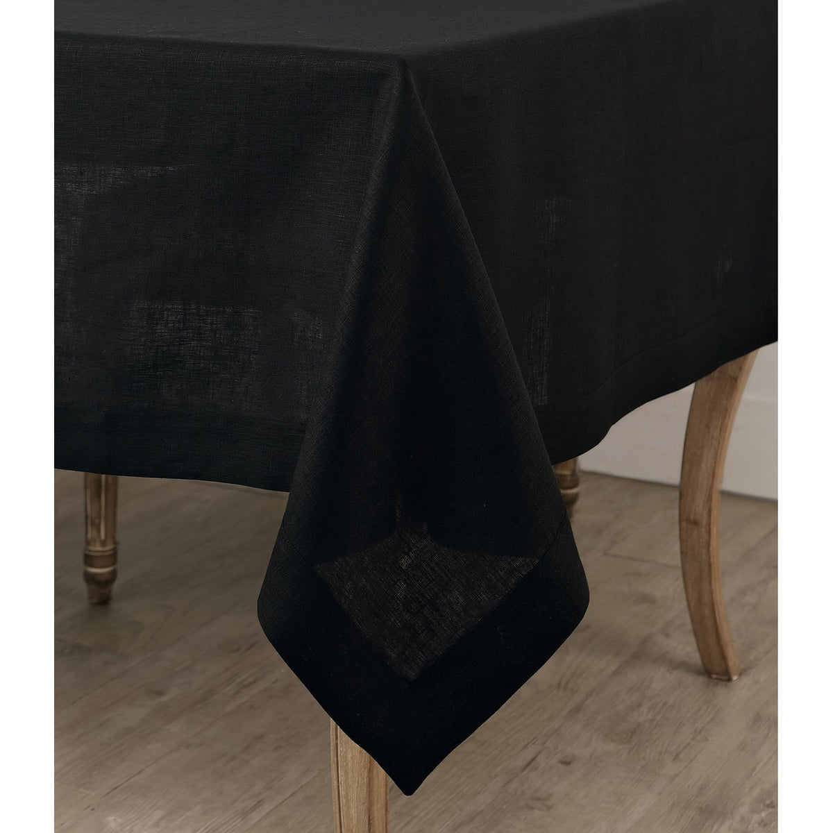 Solino Home Linen Black Tablecloth 60 x 90 Inch - 100% Pure Linen Rectangular Tablecloth - Machine Washable Table Cloth for Fall