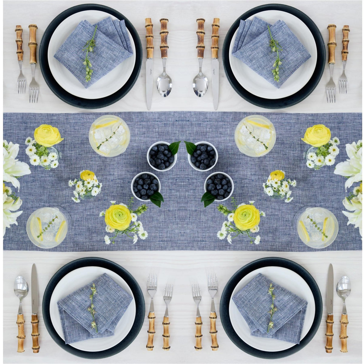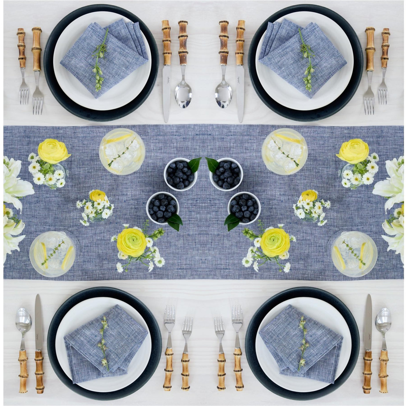 Solino Home Linen Chambray Indigo Table Runner 120 Inches Long - Athena, 100% Pure Linen 14 x 120 Inch Table Runner for Christma