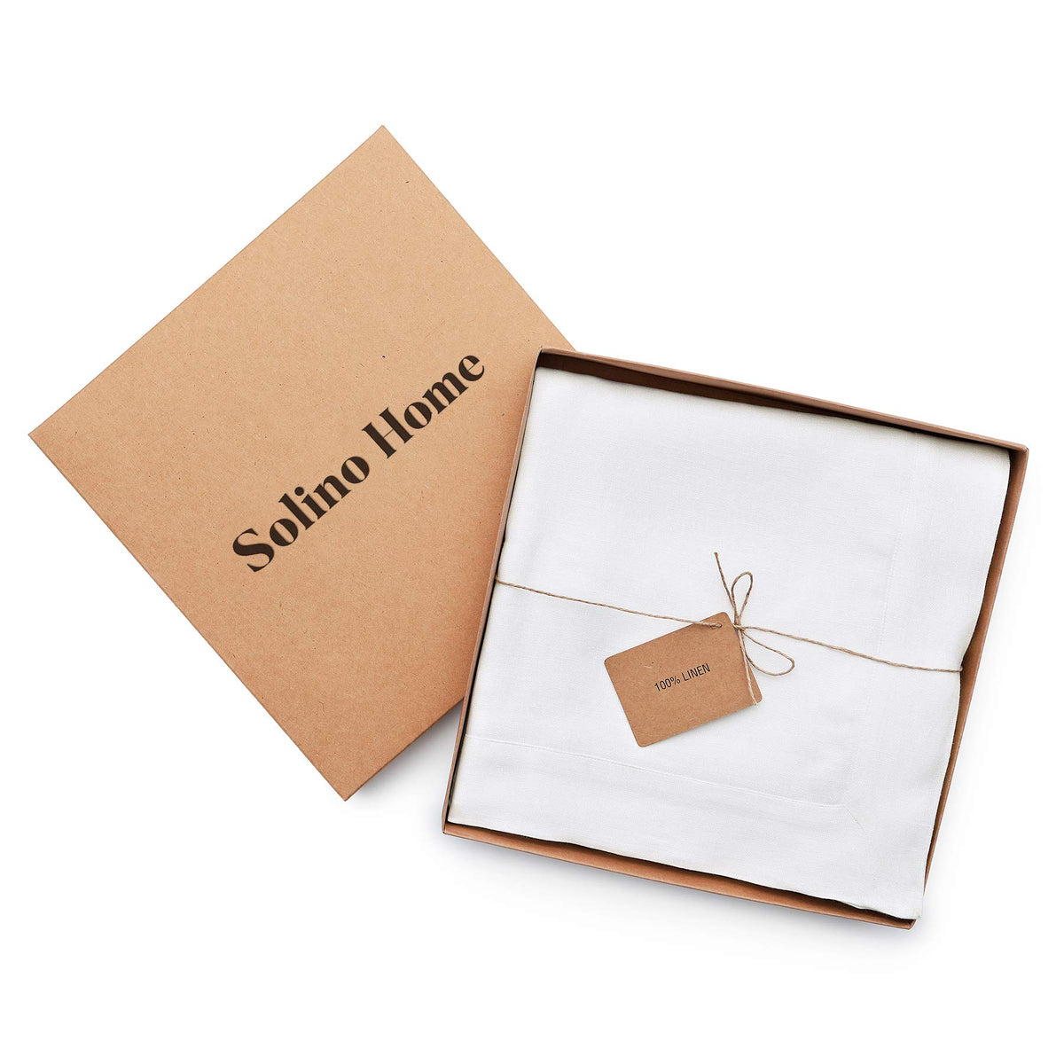 Solino Home Linen White Tablecloth 60 x 132 Inch - 100% Pure Linen Rectangular Tablecloth - Machine Washable Table Cloth for Fal