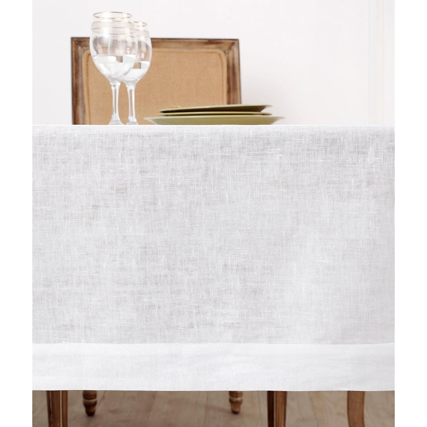 Solino Home White Linen Tablecloth 60 x 120 Inch - 100% Pure Linen Table Cloth for Rectangle Tables - Fete, Machine Washable Tab