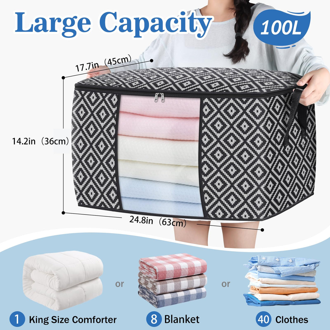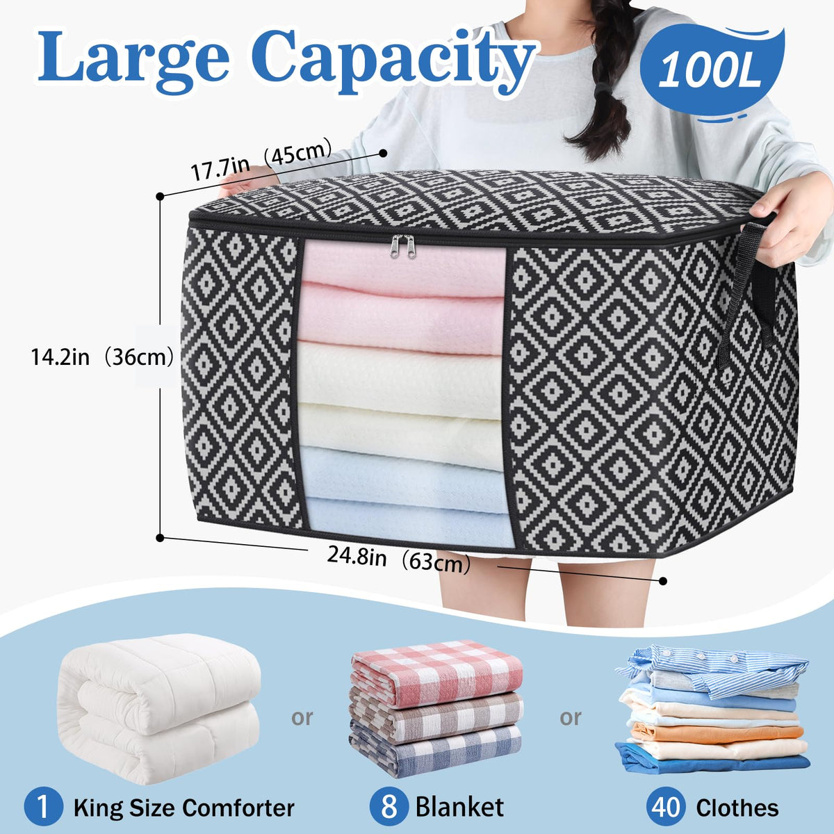 StorageTastic Direct 100L, 3 Pack, Storage Containers, Large Clothes Storage Bins Foldable Organization and Storage Bags with Re